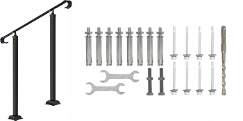 Набір поручнів для бетонних кроків містить усе, що потрібно, щоб прикріпити поручники та публікації до сходів. Це просто встановити. Повна складання протягом декількох хвилин.