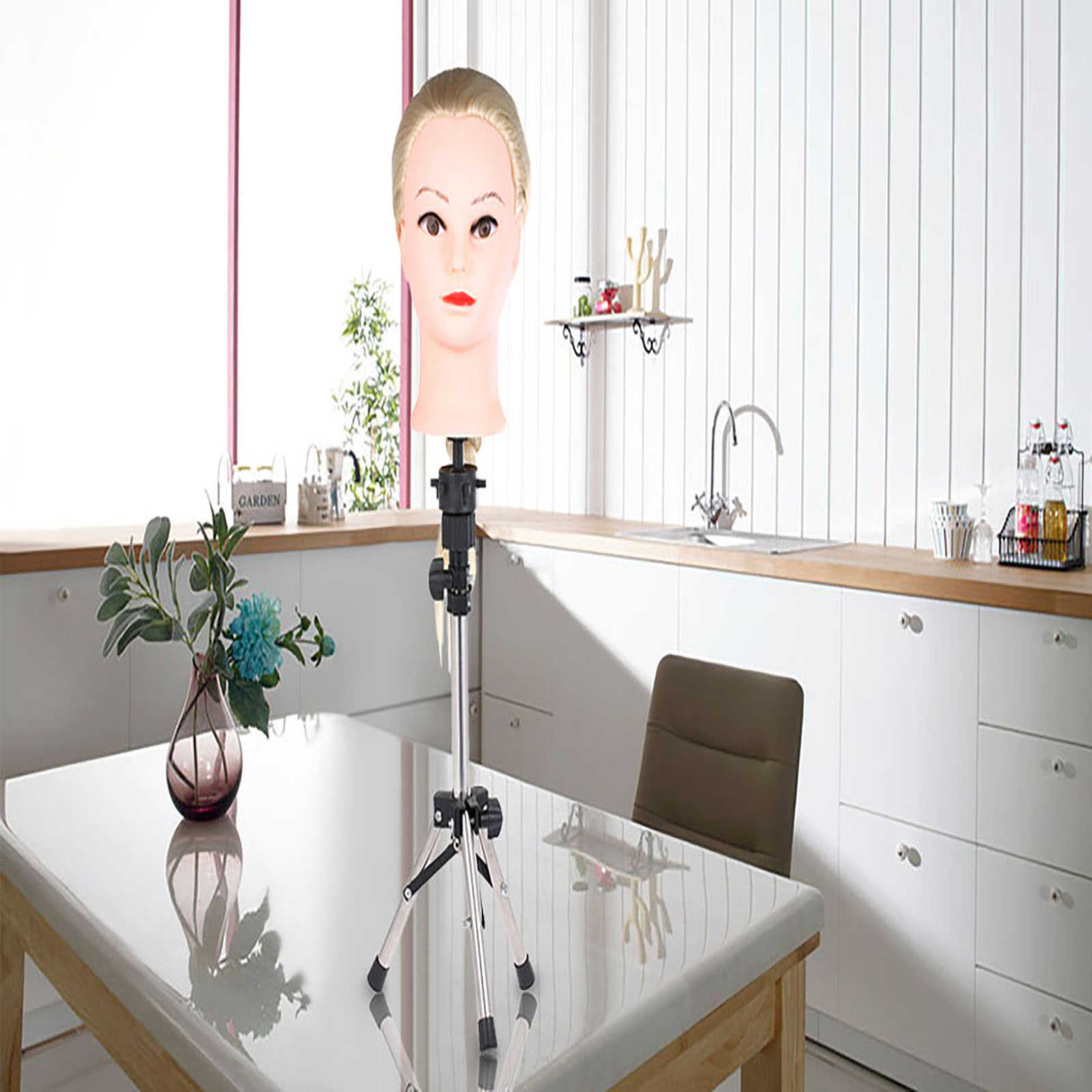 Ручка для штучної перукарської голови з штативою та висувною палицею.
