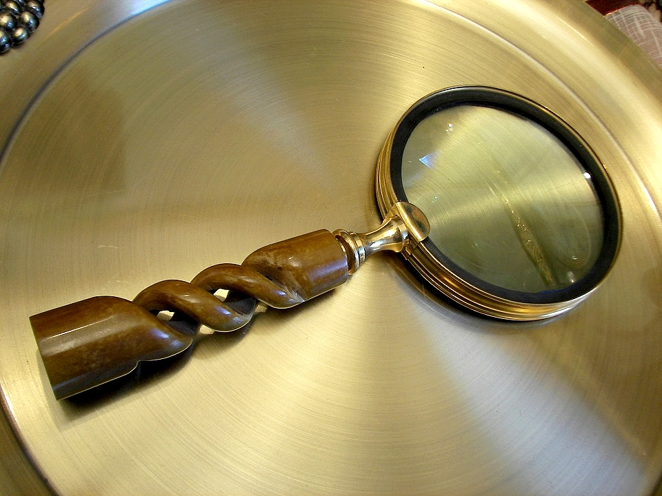 Запрошую купити гарну лупу, лупу в латунній оправі, з чудовою кістяною ручкою, ажурну, цікаву різьбу. Він дуже наближається, але я не можу точно визначити вартість. Збільшувальне скло створює чудову атмосферу