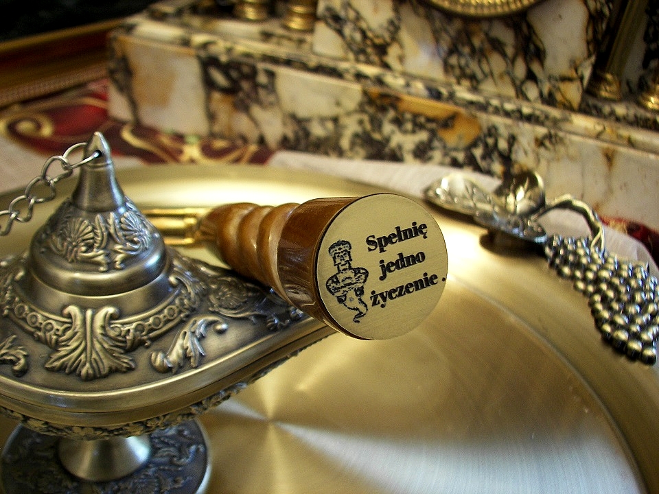 Знизу Ручка — це плоска поверхня діаметром приблизно 2,6 мм. У цьому місці ми можемо наклеїти гравіювання ламінованої пластини з Вашою присвятою. Плитка золотого кольору. Виберіть шрифт, введіть текст. Ви також можете зателефонувати нам і ми постараємося допомогти. Прикладз лампою Аладдіна, але принцип подібний