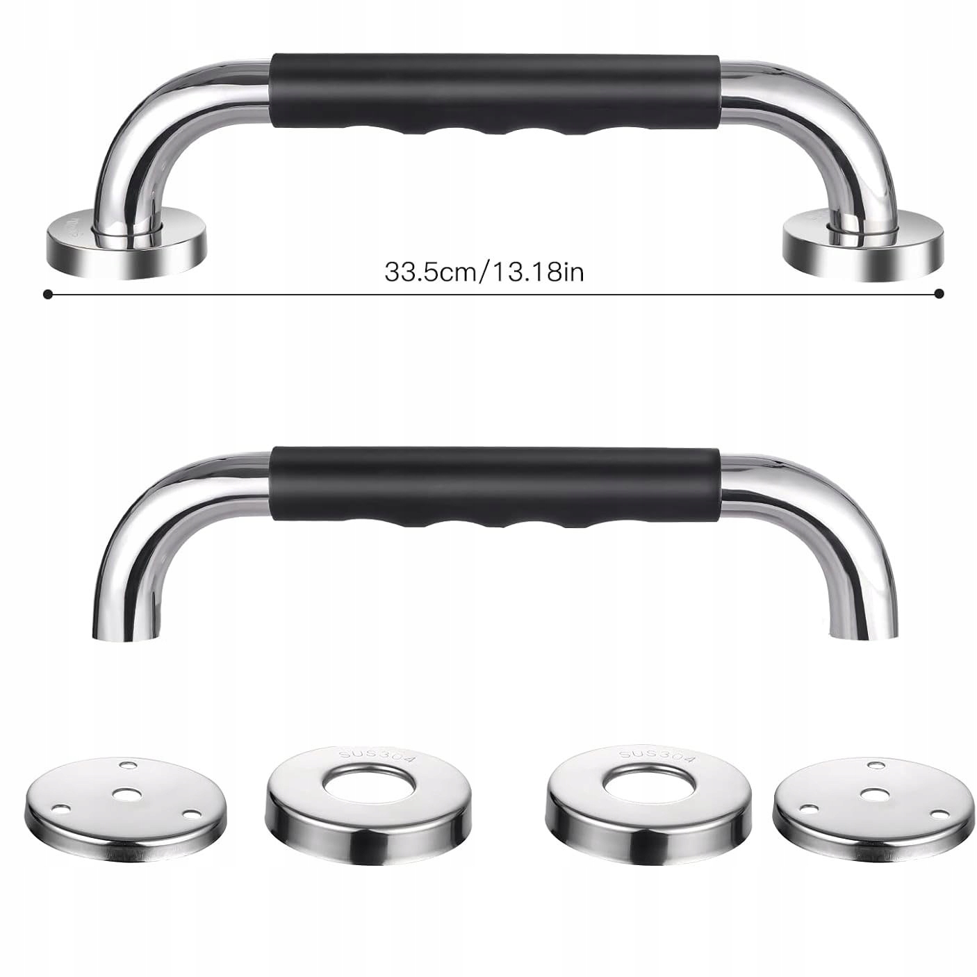 Поручний для людей похилого віку виготовлений з високої якості нержавіючої сталі 304 та гуми, , що стійкий до іржі, корії та тривалості. Ручка тверда і довговічна, порушення легко очистити, міцний і стійкий до бактеріального розвитку. Загальна довжина ручки становить 33,5 см, а це означає, що вона дуже надійна.