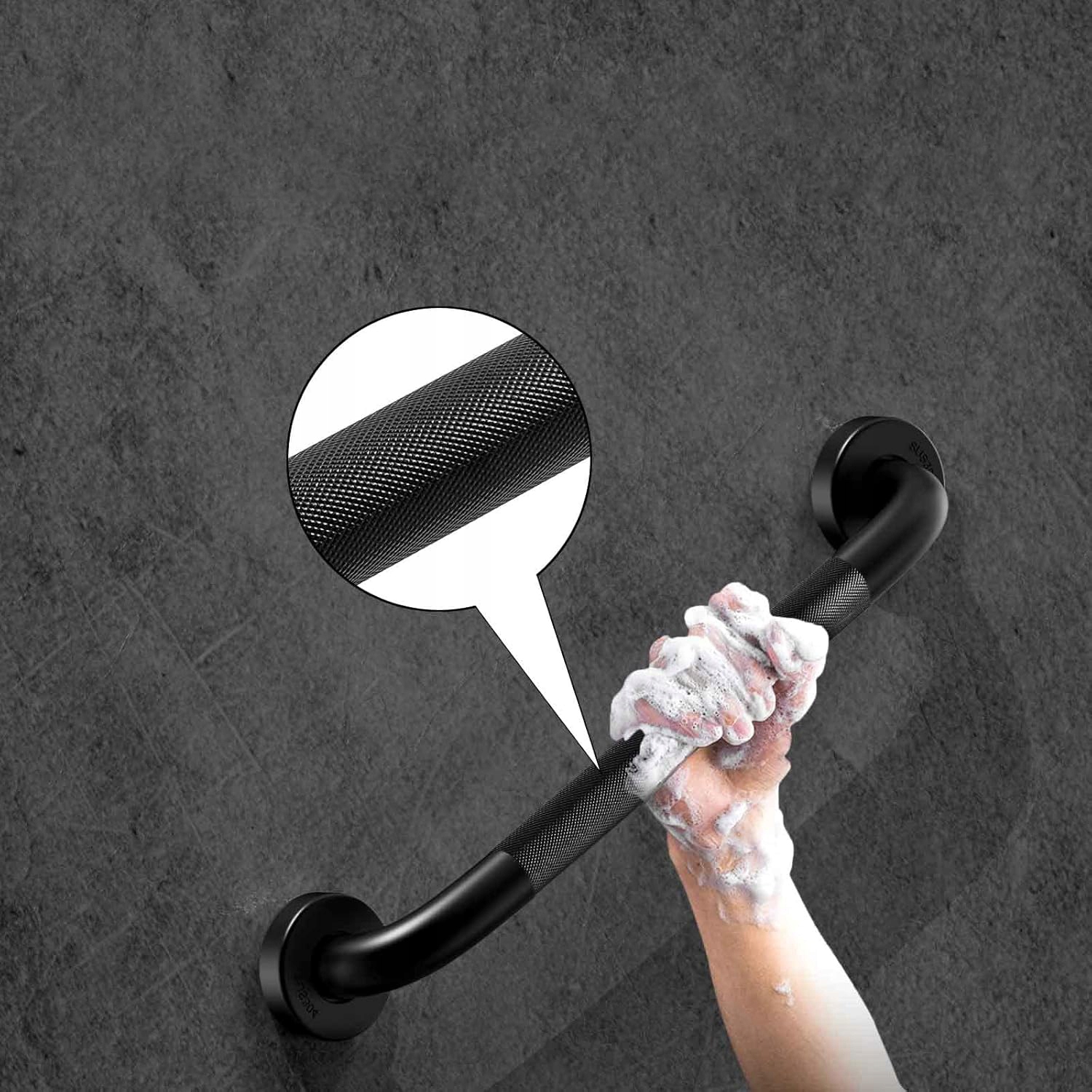 - Поруччя ванни виготовлений з високих Якість сталі з чорним покриттям, міцним, нержавіючим та корозійним. Тримайте, що гарантує безпечне використання навіть тоді, коли воно є мокрим.