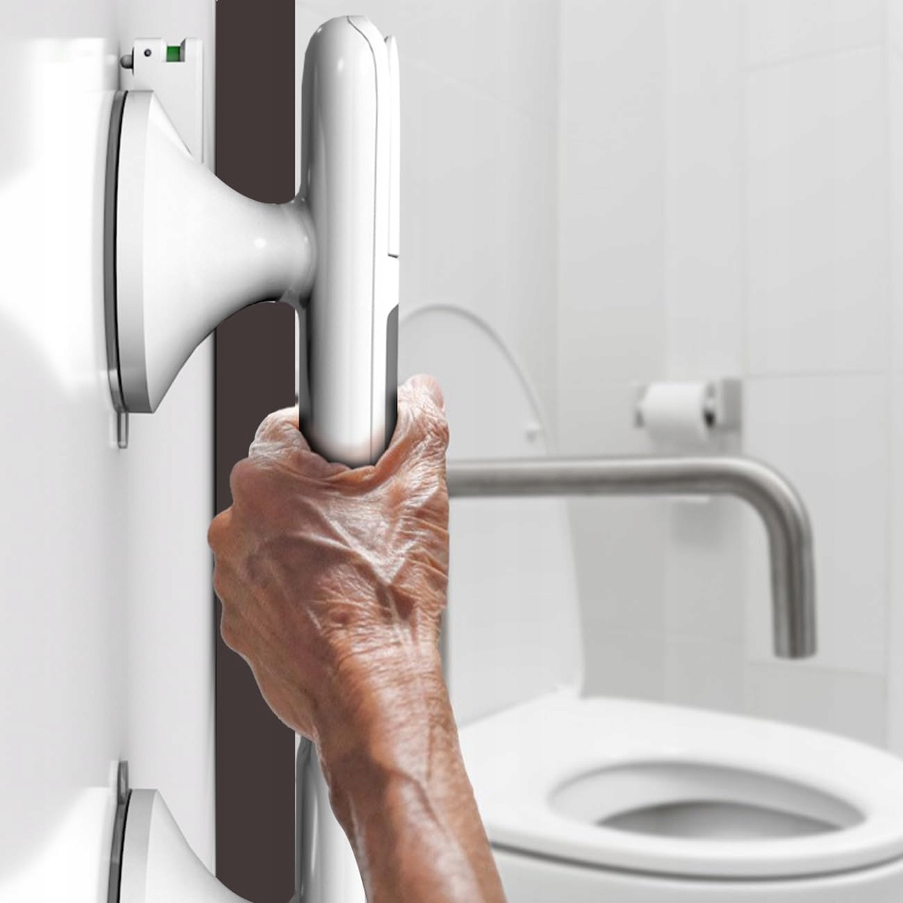 - Поручні придатні для використання на будь-якому непориста, плоска поверхня, включаючи гладку плитку, скло, порцеляну та інші. Ідеально підходить для ванни, душу, туалету, сходів або крісла.