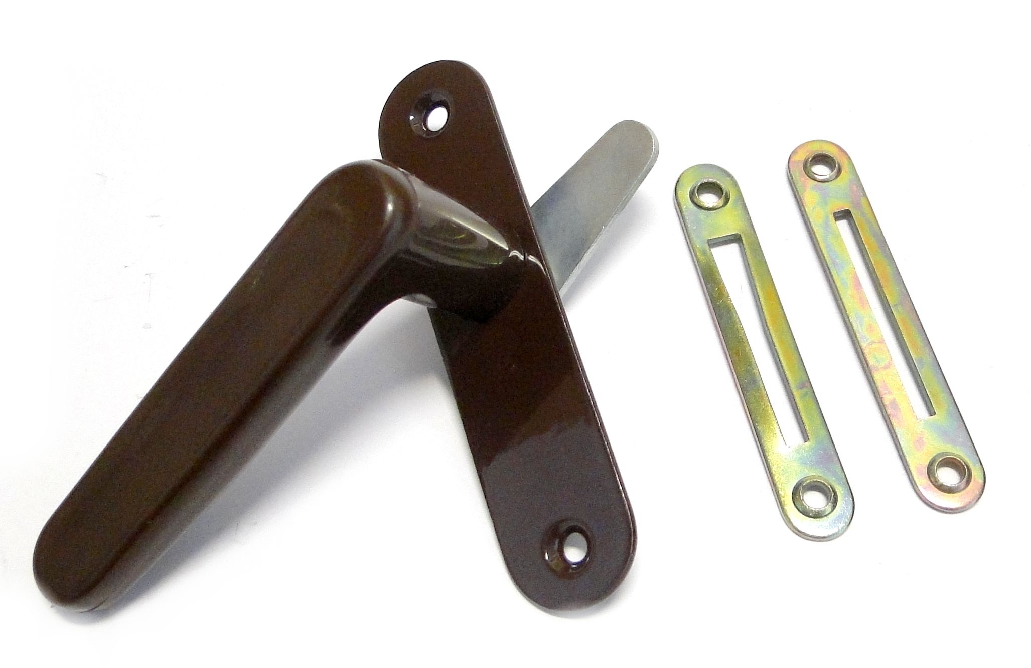 РУЧКА ВІКОННА ОЛИВОВА ВТОЛЕНА КОРОТКА КОРИЧНА Х