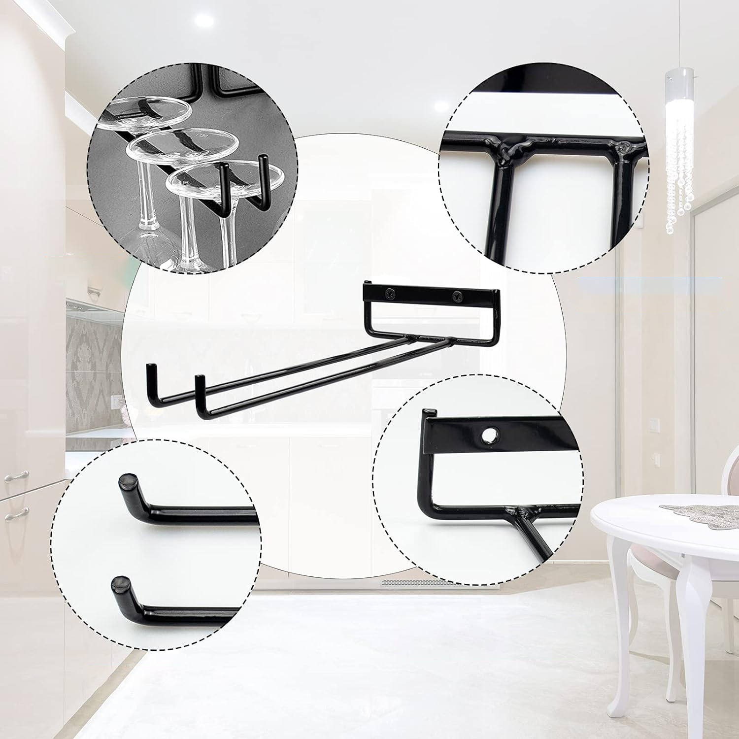 🌟 [Збереження місця]: Ви можете повісити 3-4 склянки на кожній підставці для винних келихів (залежно від розміру склянок), що дозволяє заощадити багато місця на кухні або винній шафі та відображати склянки.