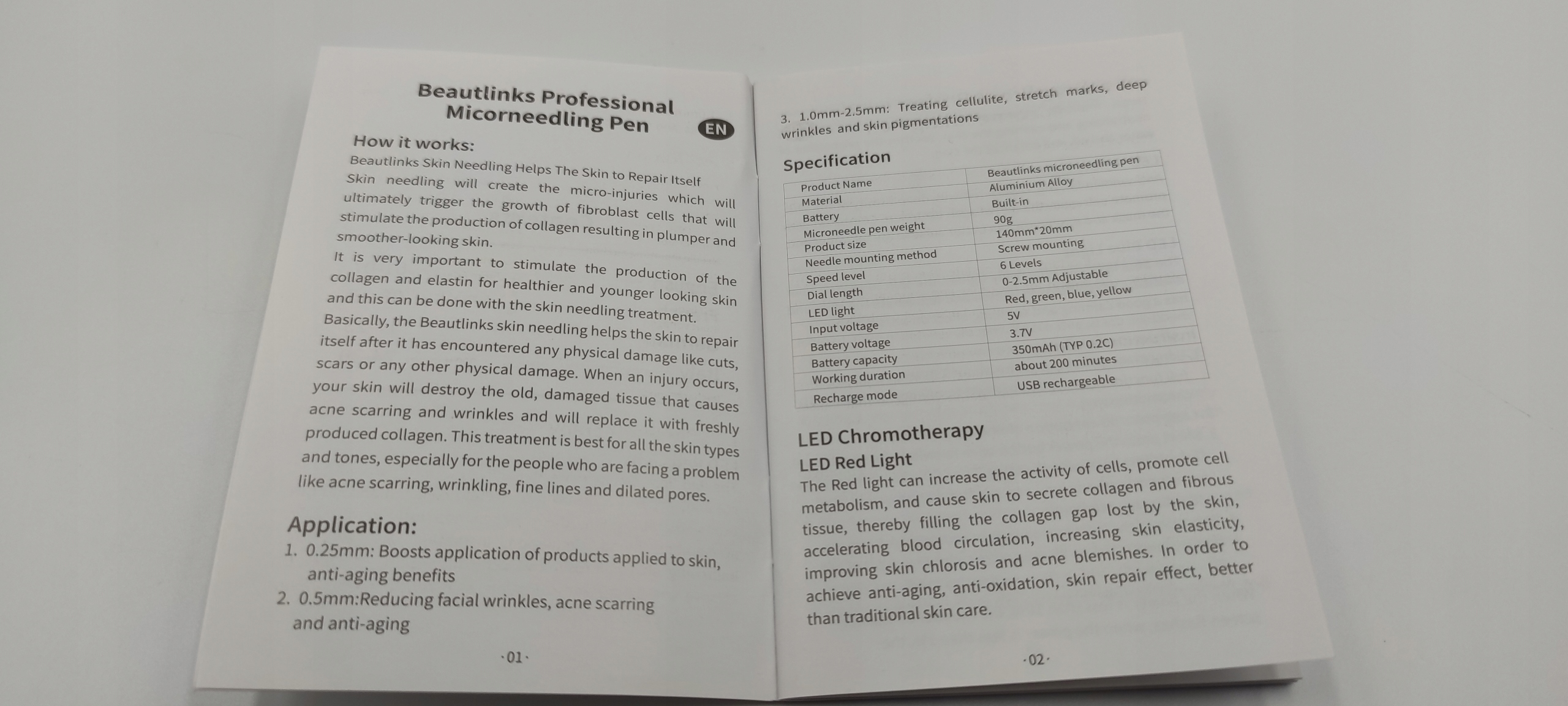 - Наша електрична ручка з мікроголками Beautlink оснащена 6 рівнями швидкості, 4 світлодіодними лампами з різними функціями та 10 картриджами для голок. Це не тільки допомагає підвищити поглинання есенцій для догляду за шкірою, зміцнює, підтягує шкіру та розгладжує її, але також мінімізує багато поширених проблем зі шкірою. Ви можете будь-коли насолоджуватися якісним доглядом за шкірою вдома.