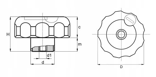 Зірчаста ручка з замком і різьбовою втулкою з коротким зміщенням D-60 мм M8