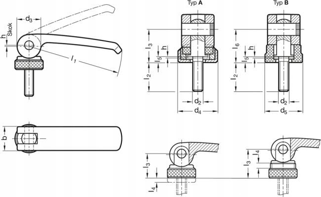 ➡️ Важіль з нержавіючої сталі GN 927.5-44-M4-20-A - з різьбовим штифтом ⬅️