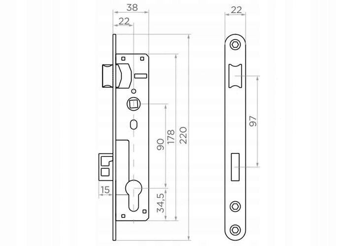 3️⃣ Замок на засув і ригель 90/22 (універсальний).