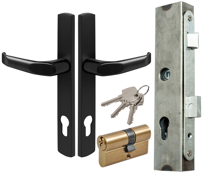 Комплект воріт: замок, касета замка, алюмінієва ручка з пластиною + вкладиш.