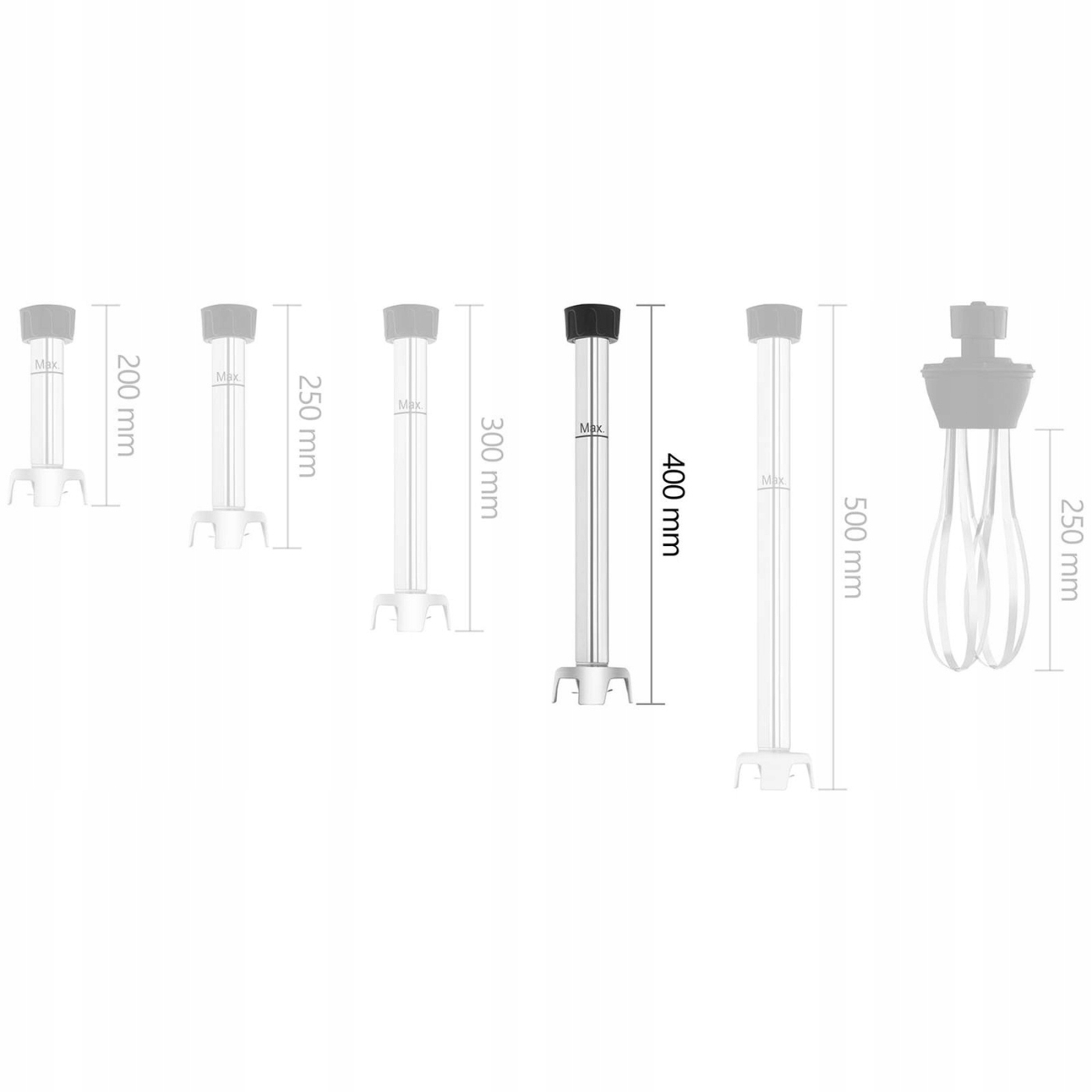 Довжина 40 см дозволяє елементу досягати дна великих контейнерів і змішувати кілька продуктів одночасно. Рішення дуже практичне в закладах громадського харчування, де багато клієнтів одночасно.