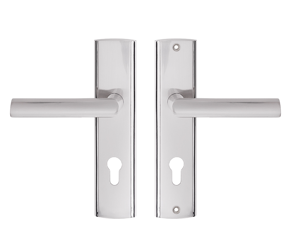 Дверні ручки на довгій пластині мають розмір пуансона, який визначає відстань від центру поворотного штифта ручки до центру отвору для ключа, циліндра чи туалетного замка. Найпопулярніший розмір на польському ринку 72 мм. Цей розмір використовують усі провідні виробники міжкімнатних дверей на польському ринку.