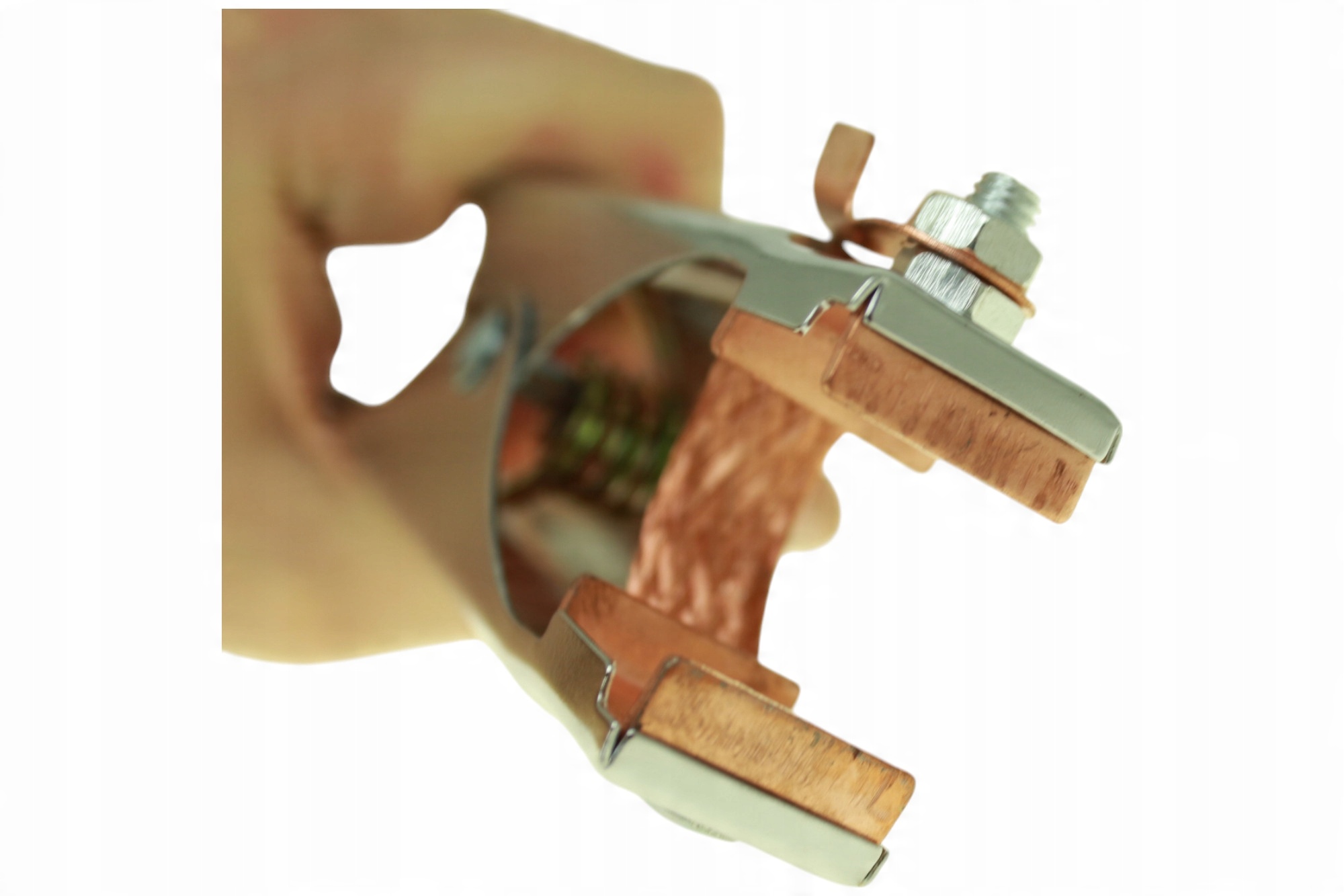 Затискна конструкція затискача та внутрішня форма губок, з’єднаних мідною опліткою, забезпечують оптимальну поверхню контакту заземлюючого проводу з елементом, що кріпиться.