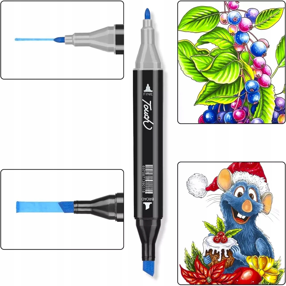 ✍️ Спеціально профільований корпус маркера дуже зручно лежить в руці, забезпечуючи приємну, комфортну роботу з маркером. Два наконечника, менший круглий і більший плоский, дозволяють створювати різні лінії одним маркером. Набір упакований в спеціальний кейс, що дозволяє зручно транспортувати ручки. Маркери призначені для професіоналів, ілюстраторів, учнів художніх шкіл і любителів.