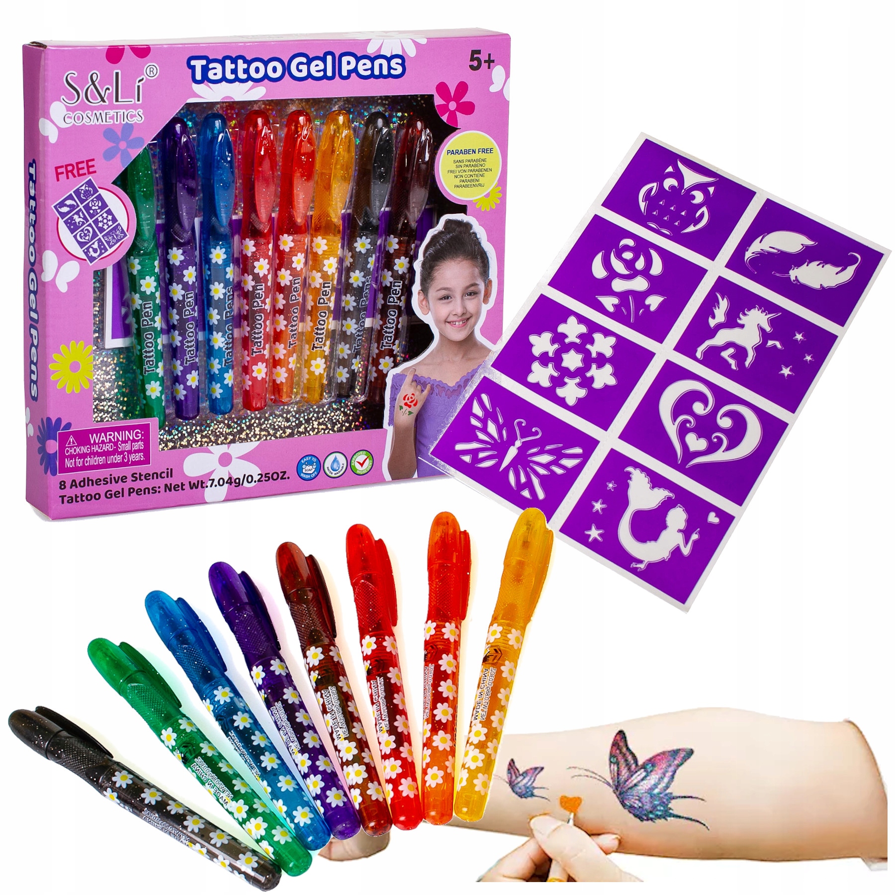 Ідеальний набір для дітей, які люблять творчість або просто захоплюються татуюваннями. Це чудова альтернатива татуюванням, нанесеним на шкіру. Ідеальна іграшка для будь-яких особливих подій!