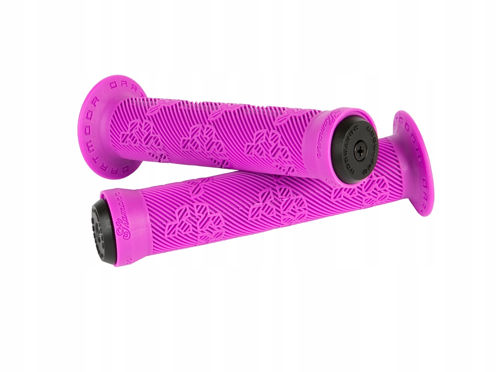 Легкі та зручні ручки BMX із високим коміром. Протектор з логотипом Dartmoor. Гумова суміш середньої м'якості з підвищеною стійкістю до стирання. У комплект входять заглушки.