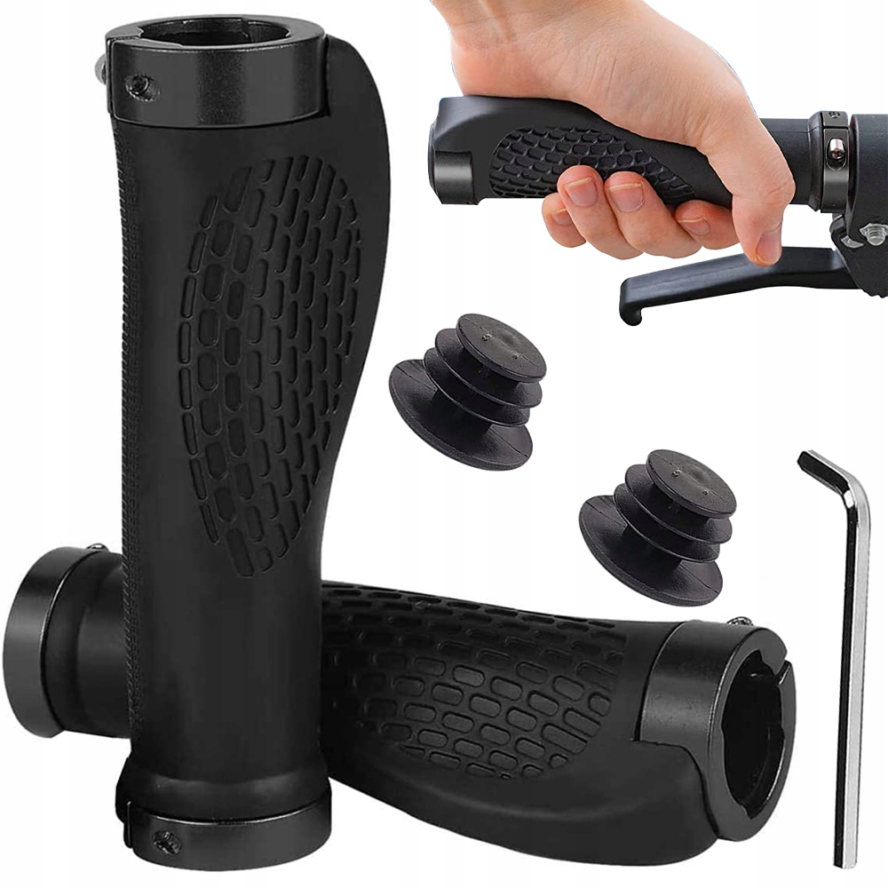 Поверхня накладок виготовлена з гуми, яка має особливу текстуру. Це рішення ідеально підходить для їзди, як по звичайному маршруту, так і по складній місцевості. Канавки на поверхні ручки значно покращують зчеплення з кермом, що безпосередньо підвищує контроль над велосипедом.