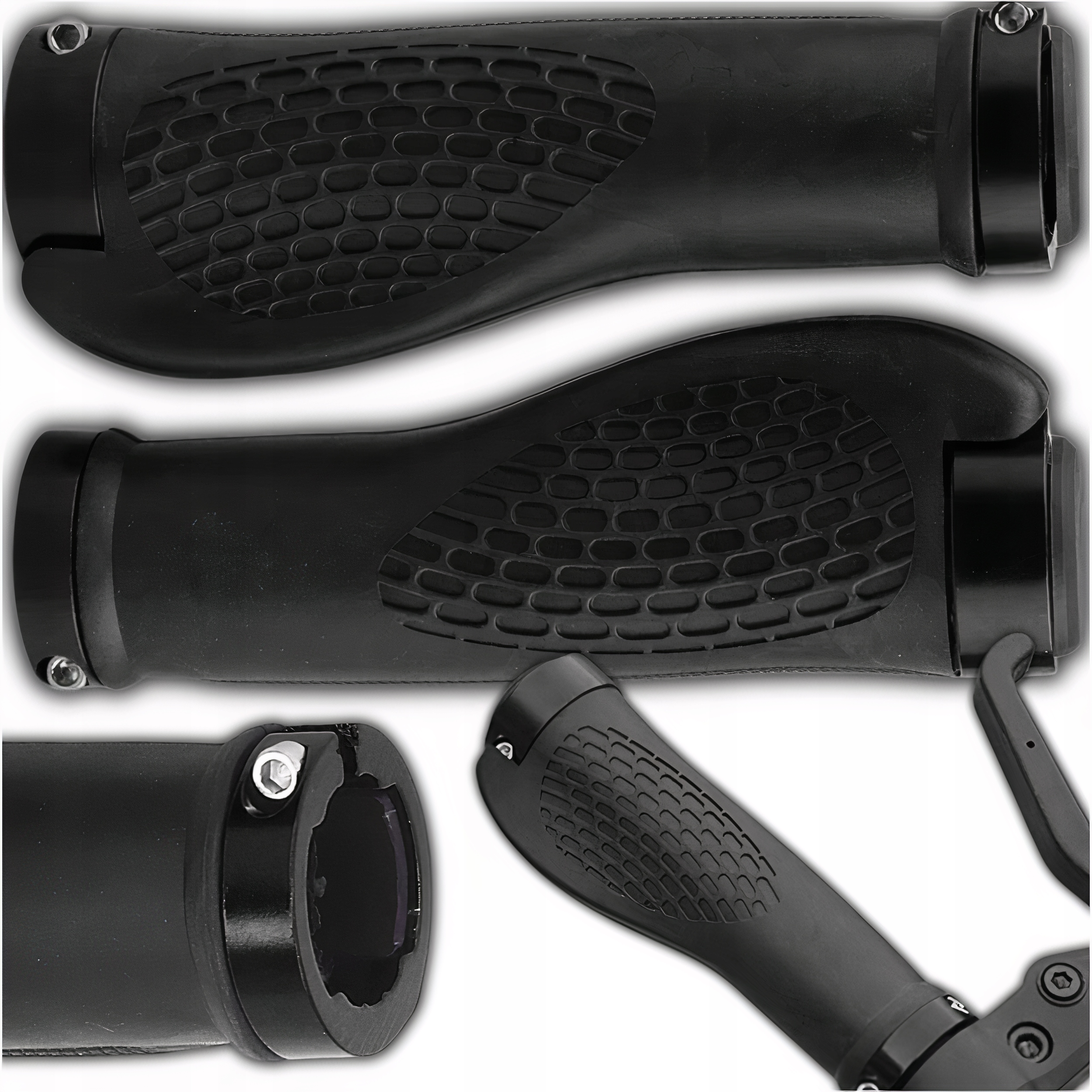 Ці рукоятки ударостійкі та мають неслизька поверхня, що надзвичайно корисно під час їзди по нерівній місцевості та в горах. Вони забезпечують міцне зчеплення, що покращує контроль над велосипедом.