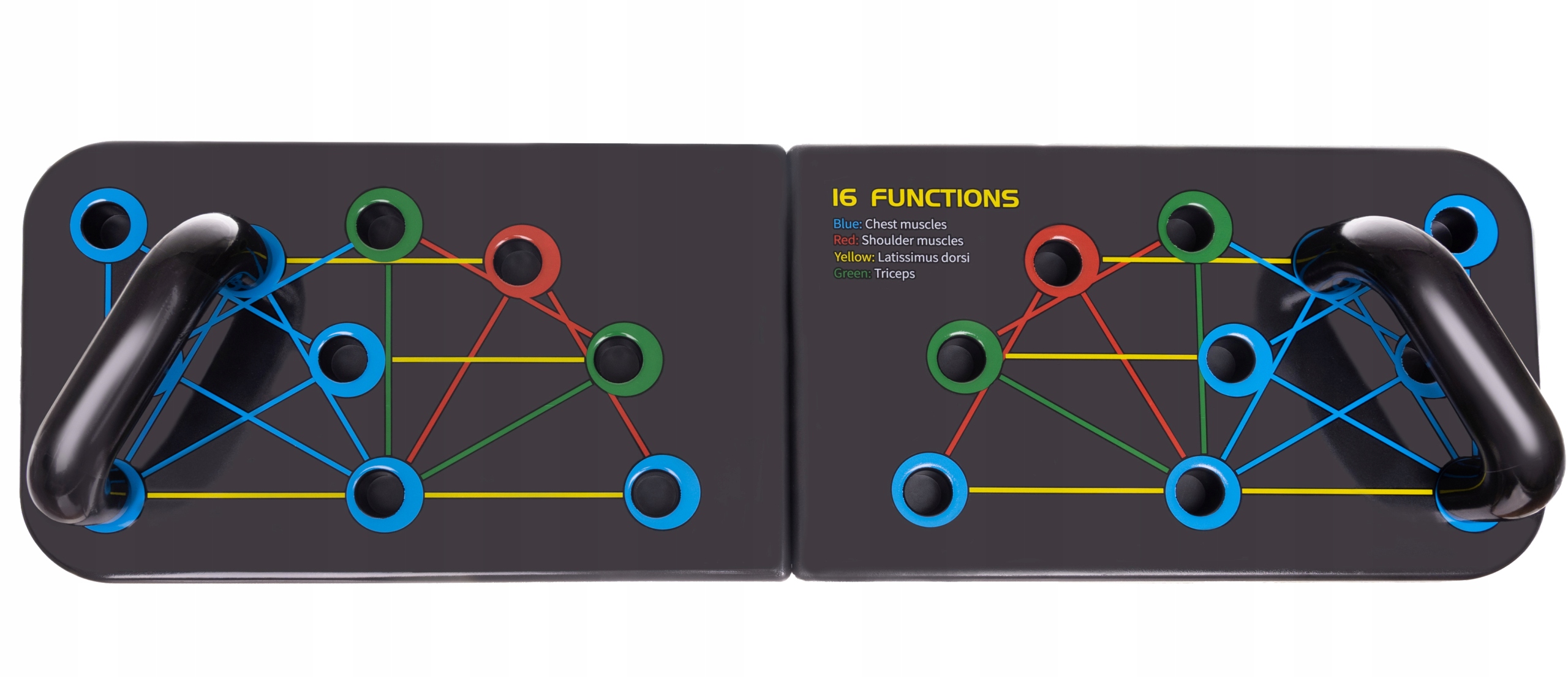 - РУЧКИ ОТЖИМАННЯ – ручки для віджимань дозволяють тренувати всі верхні групи м’язів. через відповідне налаштування кута та положення ручок. Дошка використовує вагу вашого тіла, щобсформувати м’язи верхніх кінцівок і тулуба.