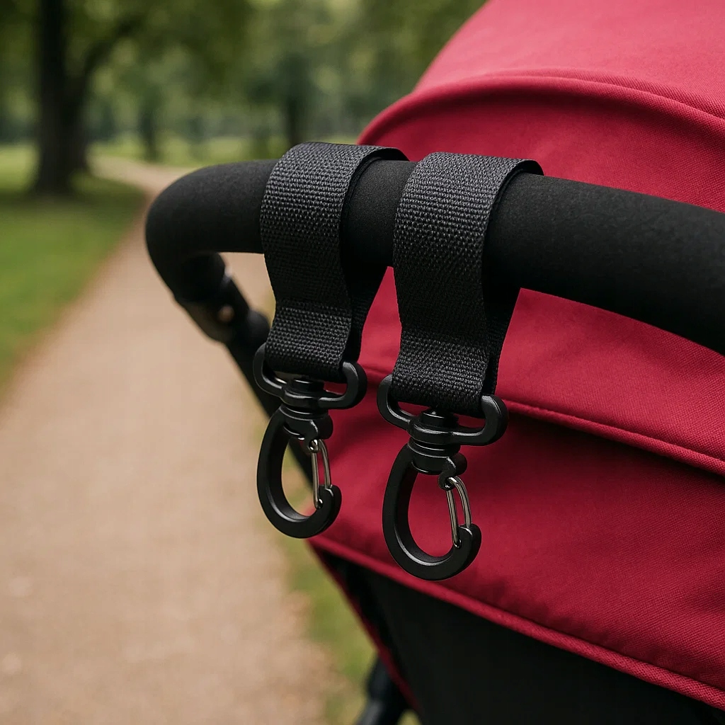 ✅ Універсальні гачки коляски - набір 2 кронштейнів липучки та обертовий гачок