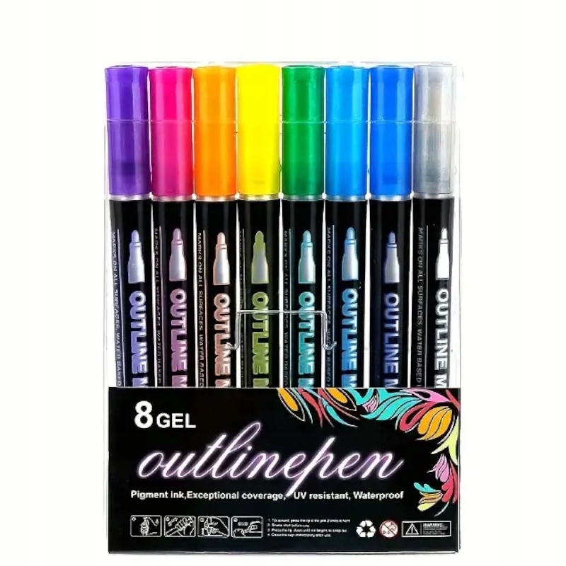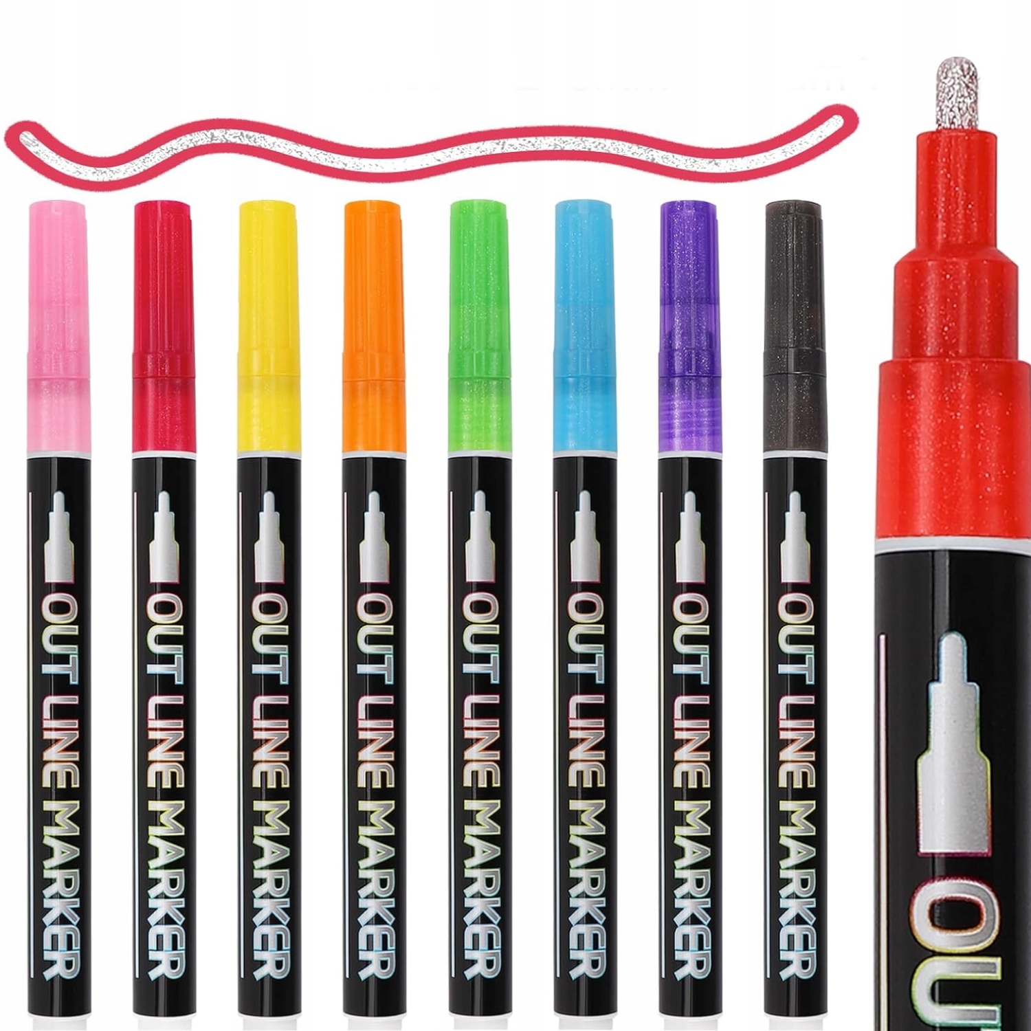 РУЧКИ ГЛІТТЕРНІ АКРИЛОВІ МЕТАЛЕВІ МАРКЕРИ ДВІ ЛІНІЙНІ 8ШТ.