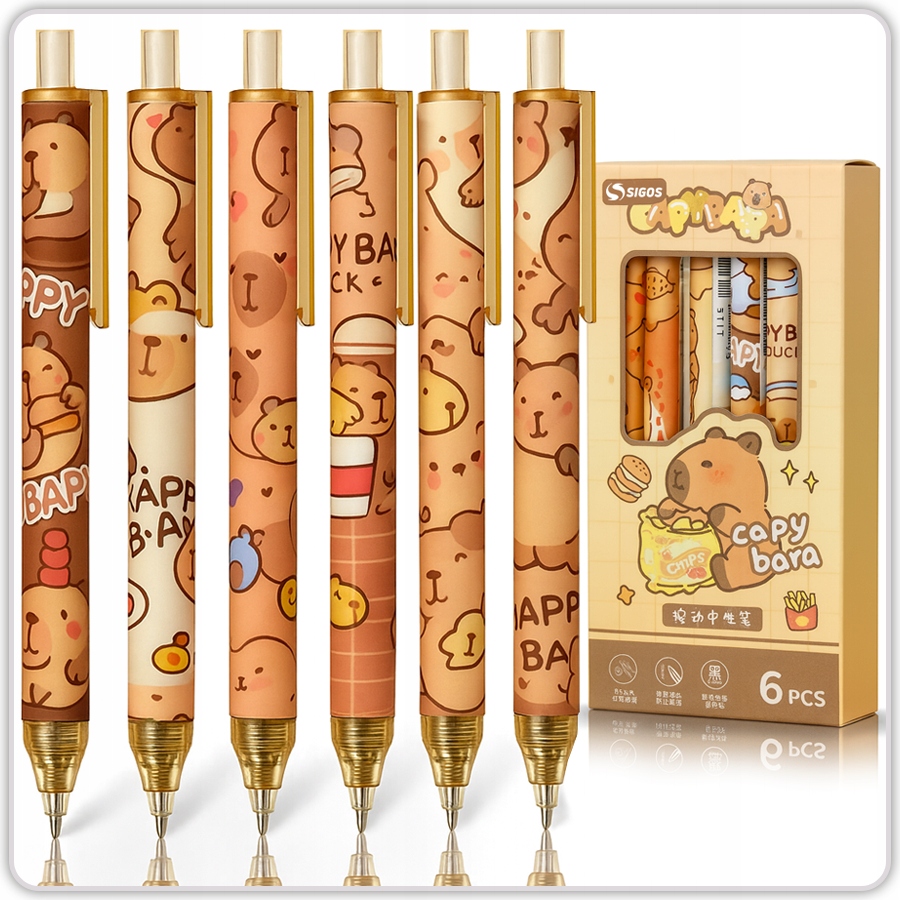 ⭐ Набір із 6 ручок із мотивом капібари — це поєднання чарівної естетики і практичне застосування.