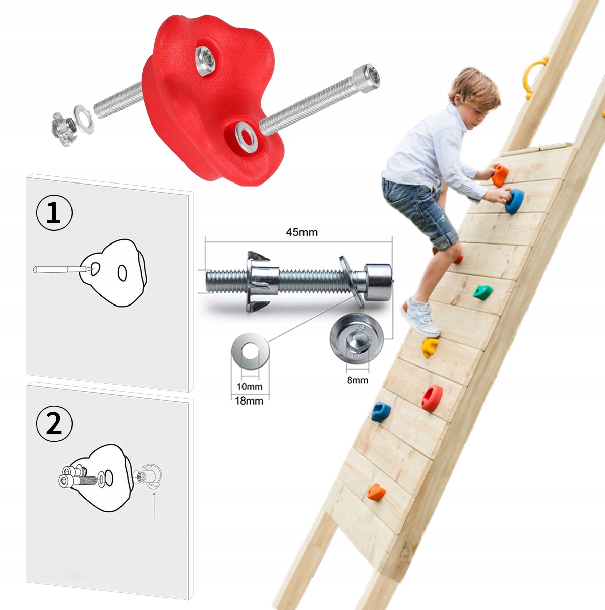 - Матеріал і конструкція: ручки для скелелазіння для діти виготовлені з міцного та нетоксичного пластику,