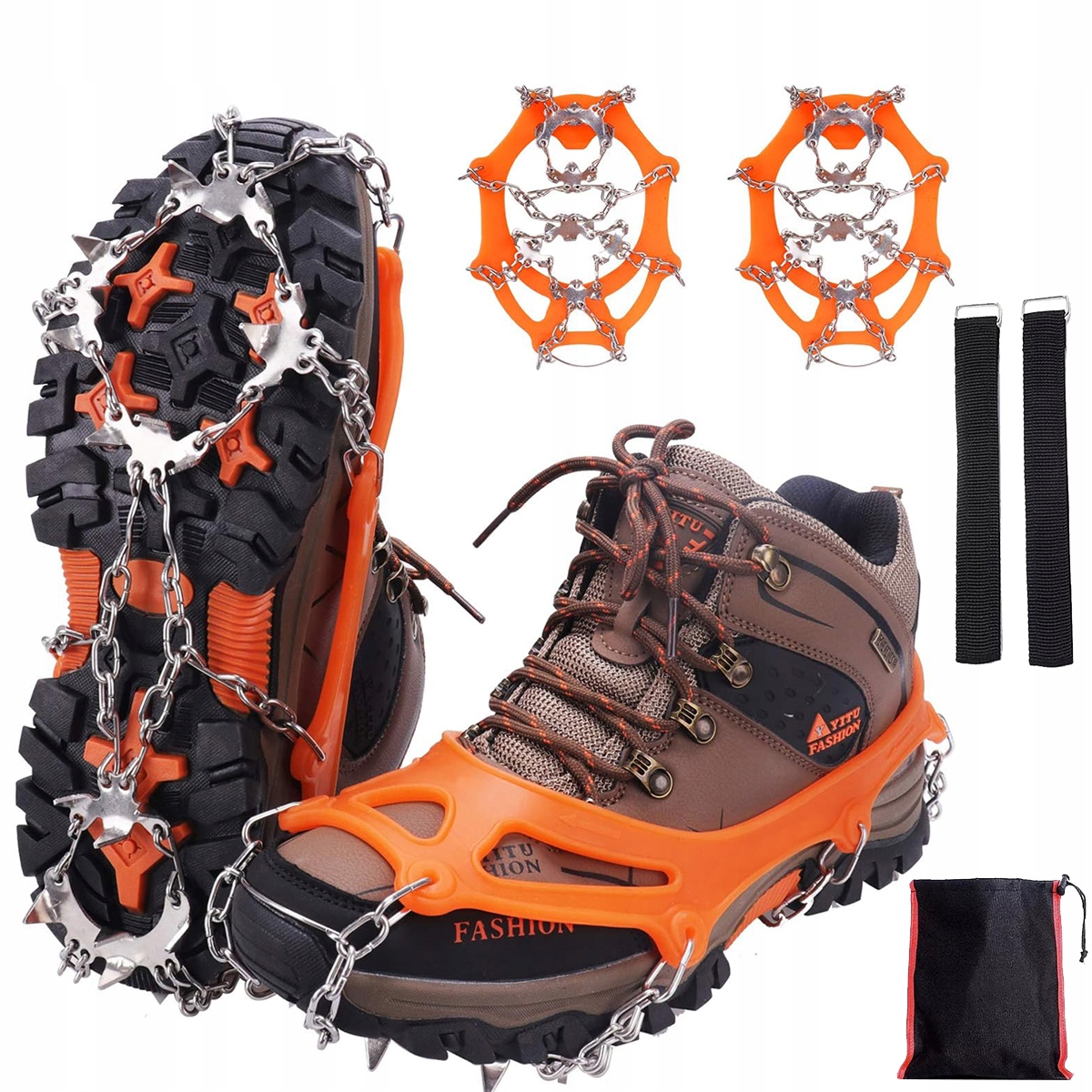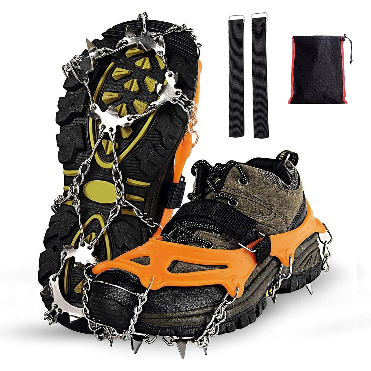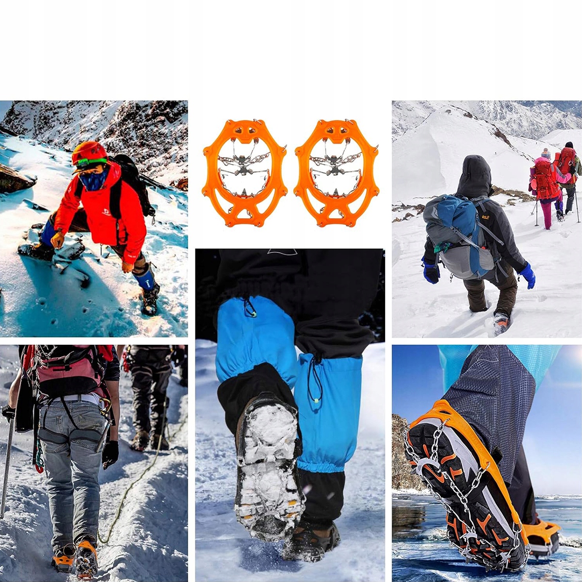 Вони підходять не тільки для зимових прогулянок по льоду та снігу, а й для полювання, скелелазіння, альпінізму, походів, риболовлі тощо. Підходять до різних розмірів взуття. Конструкція забезпечує покращене зчеплення та запобігає ковзанню вбік, зменшуючи ризик послизнення та травм під час падіння під час ходьби по льоду, снігу, багнюці, мокрій траві чи інших несприятливих умовах.