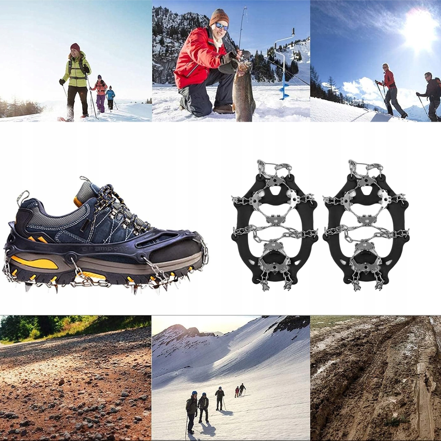 ✅【Посилені шипи з нержавіючої сталі】: Оснащені шипами з 19 зубцями та міцною системою ланцюга, вони забезпечують чудове зчеплення на різноманітній місцевості та допомагають вам залишатися в безпеці та уникати травм
