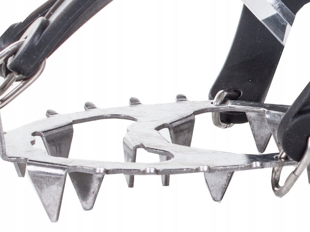 Сталеві зуби на всій підошві з'єднані зі сталевими кільцями та гумовим ободом взуття. Еластична стрічка легко натягується на взуття. Ручки добре прилягають до взуття та не зісковзують.