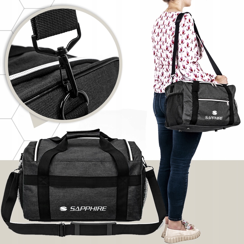 Пропонована сумка виготовлена з міцного, стійкого до стирання матеріалу Oxford 600D. Цей багаж варто оцінити особливо людям, яким доводиться часто подорожувати. Вам більше не потрібно турбуватися про стан своїх речей - Sapphire гарантує, що вони завжди будуть добре захищені.
