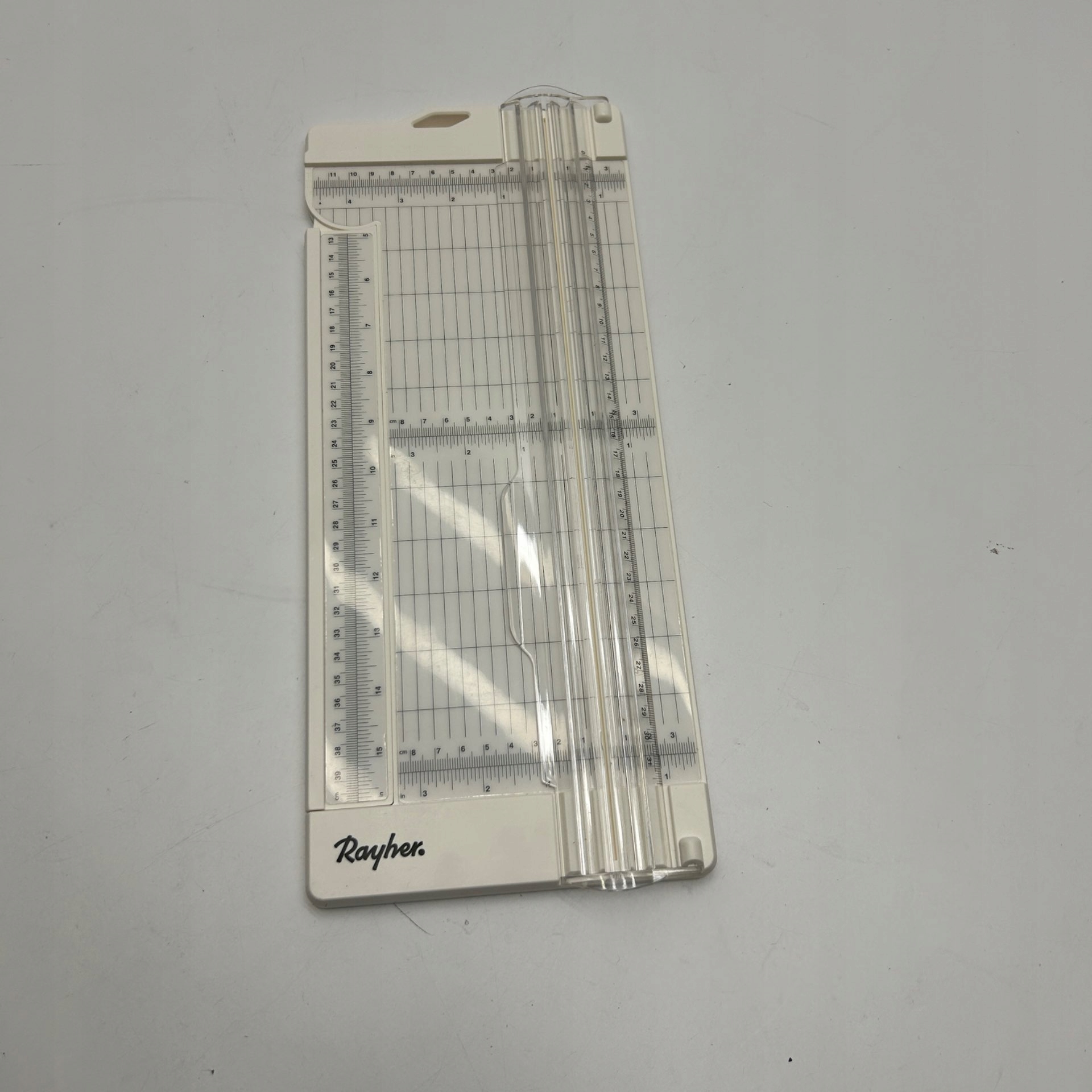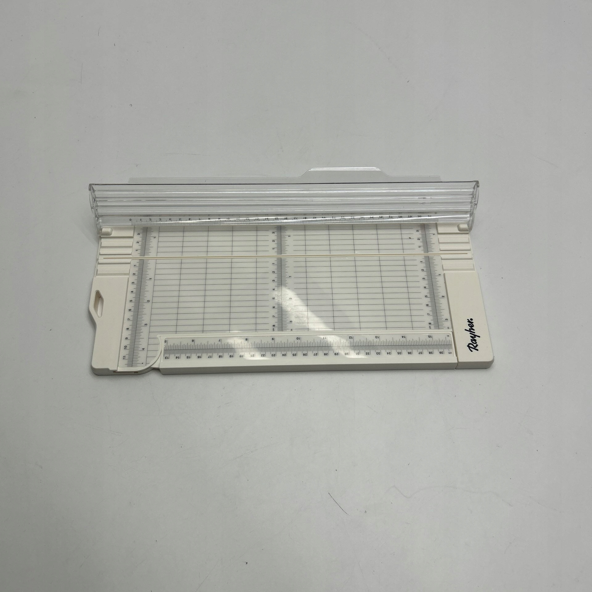 Машина для різання паперу формату A5, шкала в сантиметрах і дюймах, шкала в дюймах (¼ дюйма) і см (мм)