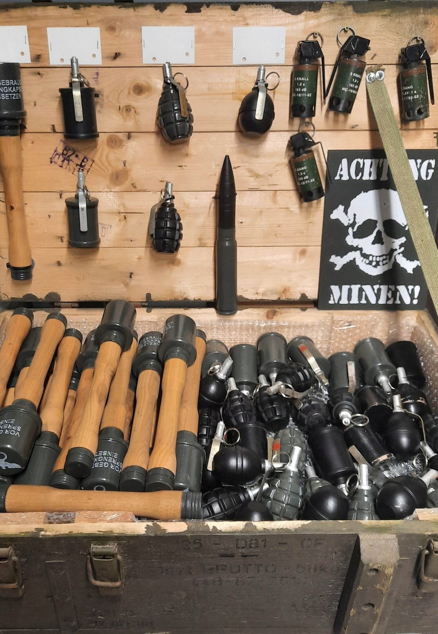 Манекет в масштабі 1:1 з прикріпленою оригінальною ложкою УЗРГМ, виготовлений із використаних гранат.