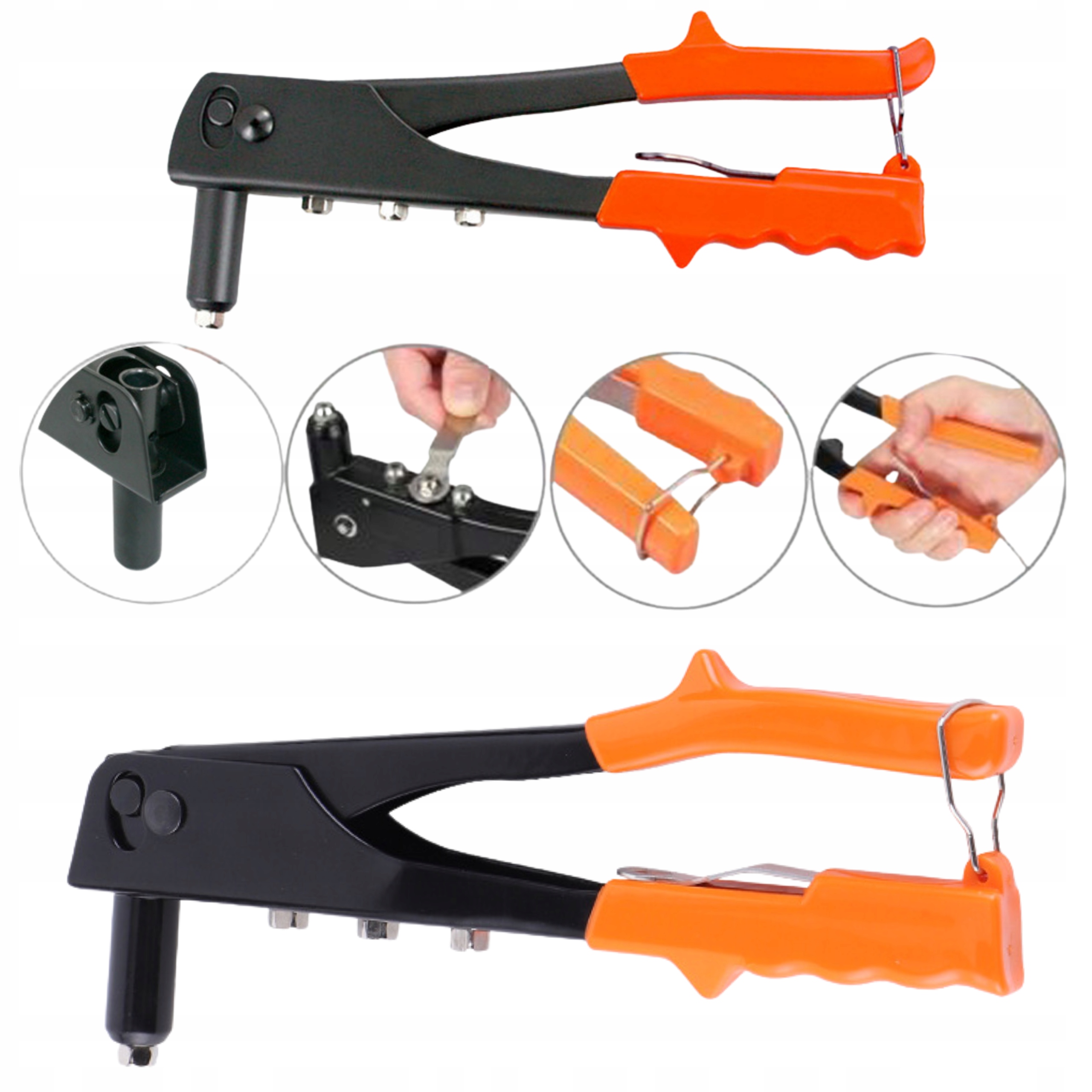 РУЧНИЙ КЛЕПАЛЬНИК для міцних заклепок, 4 наконечники, алюмінієві сталеві заклепки, 240 мм