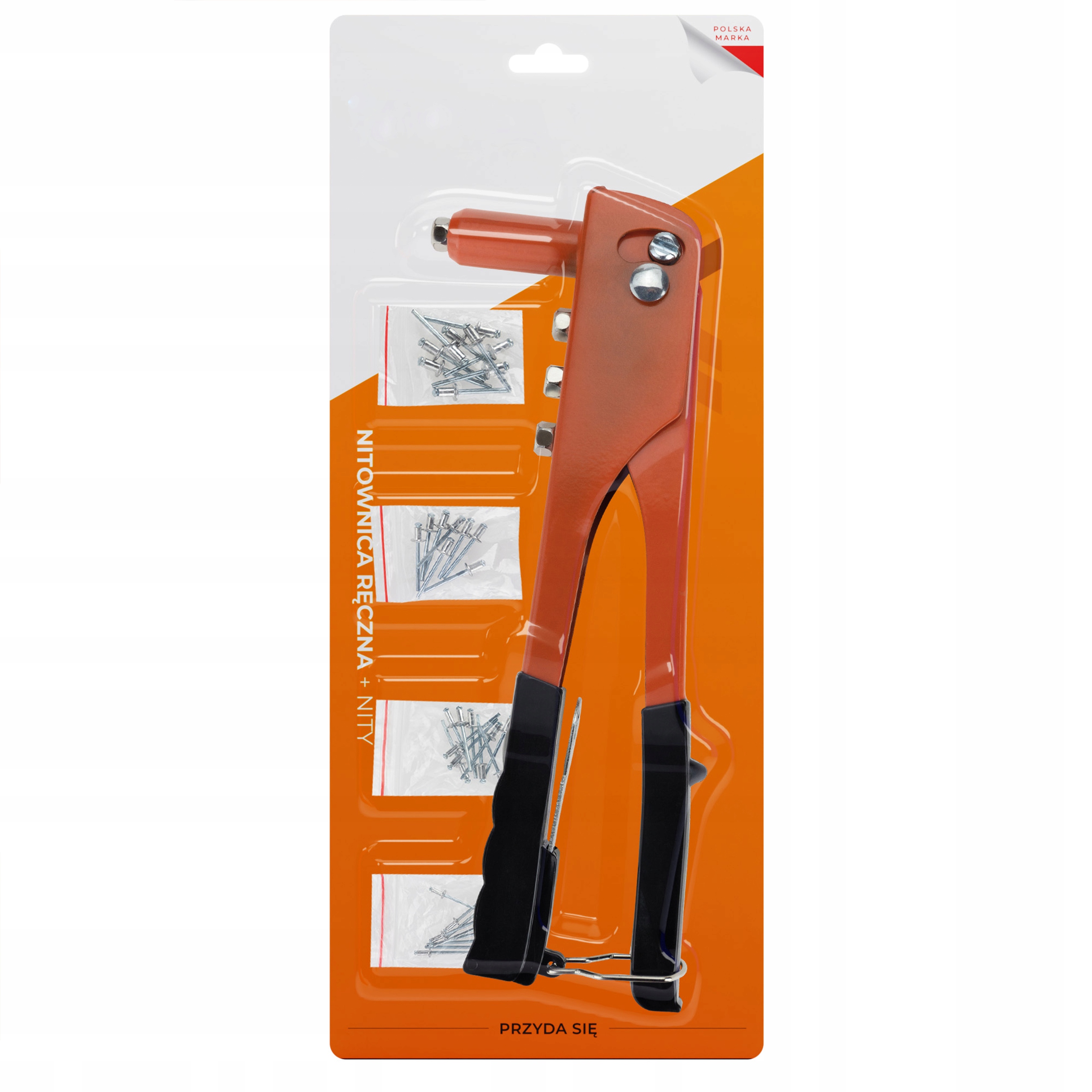Ручний заклепувальник має проста конструкція, що робить його надзвичайно зручним у використанні. Завдяки здатності точно працювати в будь-якому положенні, використовуючи власні сили, він стає безцінним інструментом. Ідеально підходить для з'єднання металевих елементів, листового металу, пластику, повсті, картону та дерева. Загальна довжина заклепочки становить 24 см, виготовлена вона з високоякісної сталі. Ручка покрита протиковзкою гумою і оснащена замком для запобігання випадкового відкриття. Крім того, всередині рукоятки є шестигранний ключ, який дозволяє легко відкручувати і загвинчувати наконечники.