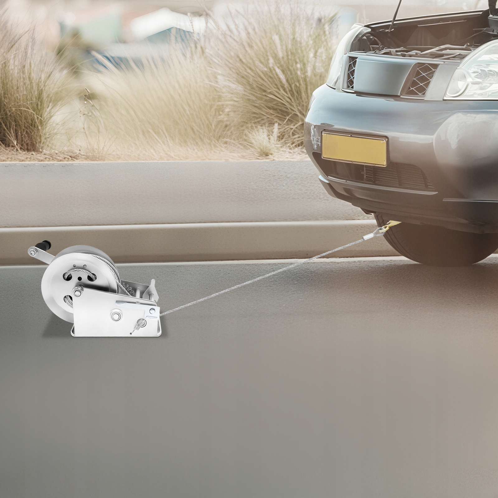 - Перевантаження лебідки суворо заборонено! 4 Найкраще покрити мотузку сталевого дроту м'якою тканиною (не прикріплена) під час роботи, щоб запобігти травмам, спричиненим величезною силою реверсу, коли мотузка зі сталевого дроту раптово зламається.