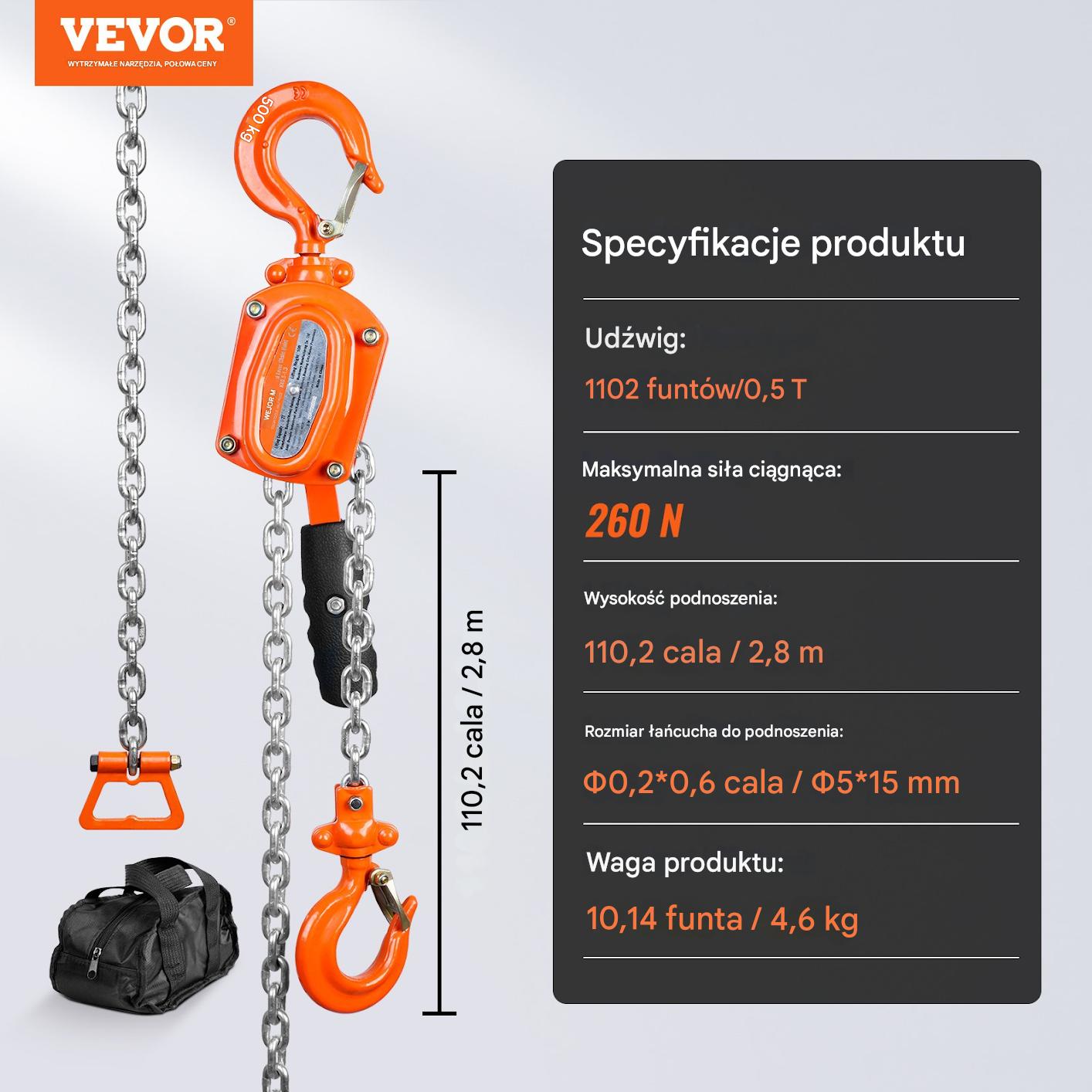Підніміть з точністю та легкістю! Ручна лебідка місткістю 500 кг та діапазону 2,8 м - ідеальний інструмент для роботи в тісних просторах. Міцна сталь, надійне гальмо та ланцюг G80 - забезпечуйте безпеку та комфорт. Бережіть ефективність зараз!