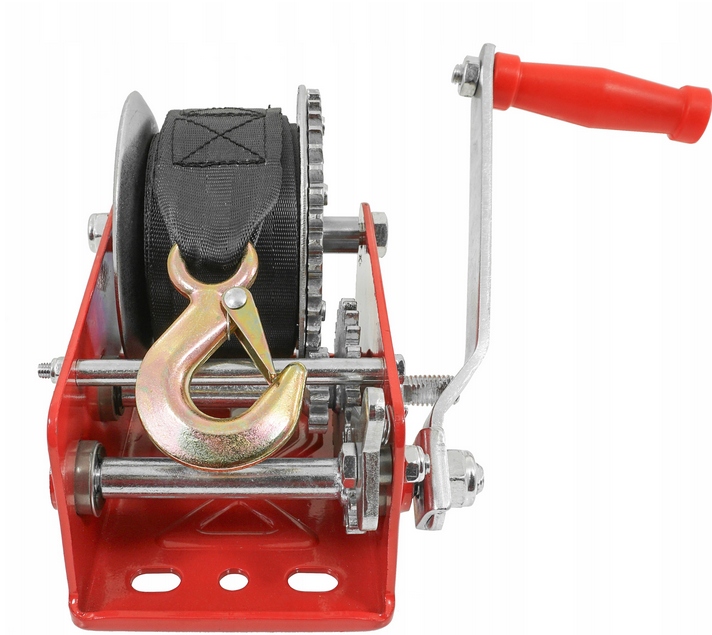 Це лебідка з міцною сталевою конструкцією, призначена для лебідки невеликих човнів, водних мотоциклів, квадроциклів, невеликих транспортних засобів тощо. Вона має легкодоступний важіль для зміни напрямку обертання: згорнути/розгорнути. Лебідка виготовлена з високоякісних матеріалів з відповідною міцністю - конструкційна сталь і литий гак з поворотною пружиною. Пристрій управляється рукояткою разом із храповим механізмом, ці властивості дозволяють піднімати та опускати предмети. Його можна використовувати, серед іншого, для розтягування сітки огорожі, прив’язування, кріплення та перетягування важких і великих предметів.