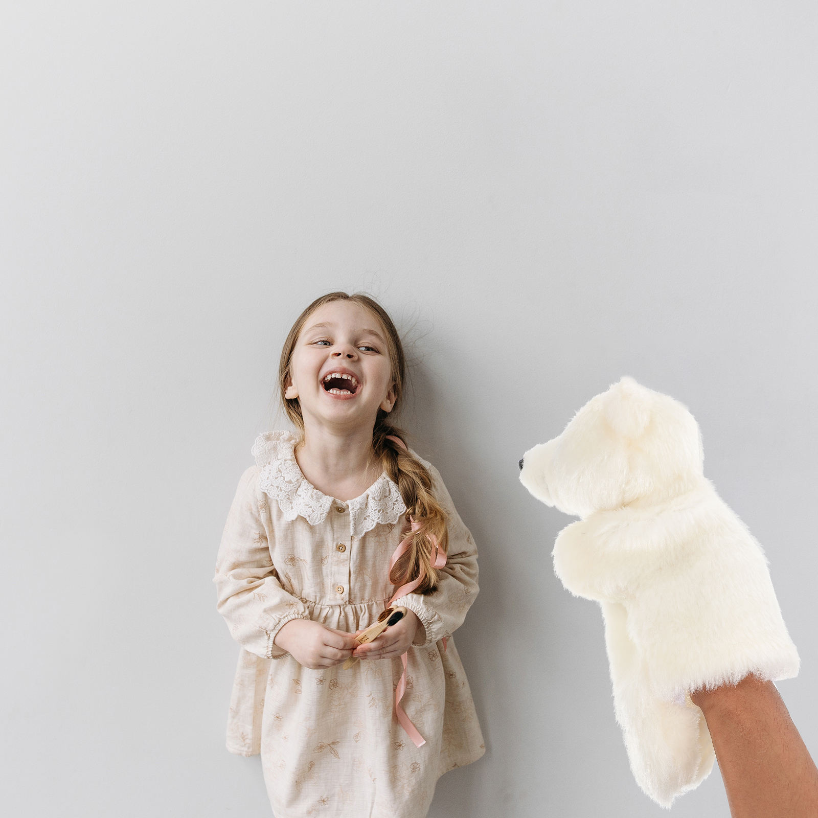 Ручна лялька ляльок ляльок ляльок лялькову ляльку на руці тварина