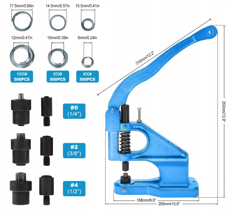 Виготовлена з міцних матеріалів машина для люверсів забезпечує стабільність і довговічність під час використання. Міцна ручна конструкція робить керування інтуїтивно зрозумілим та ефективним.