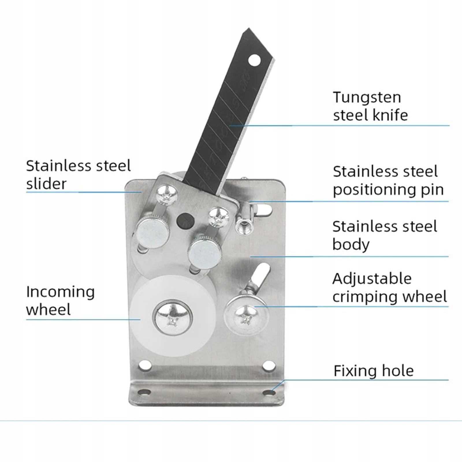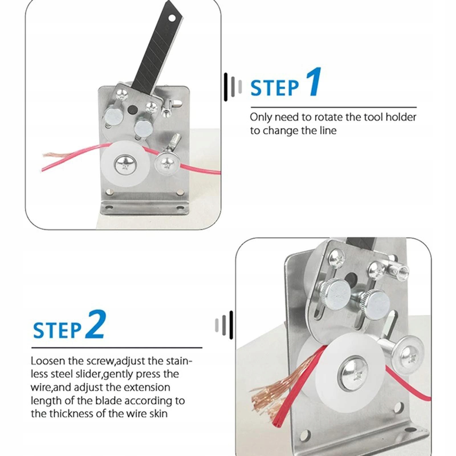 Як: обертати тримач тільки по прямій лінії; Послабте гвинт, відрегулюйте повзунок з нержавіючої сталі, обережно натисніть на дріт і відрегулюйте довжину леза відповідно до товщини дроту; Прямий плоский малюнок і дріт є