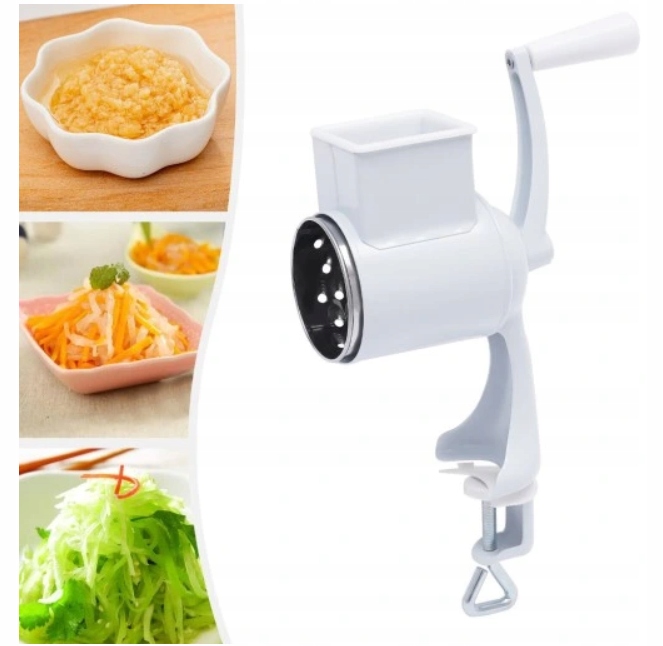 Ручна м'ясорубка 3 в 1 для подрібнення сушених фруктів, овочів і сиру Ця машина відрізняється красивою формою, простою конструкцією і практичним кріпленням до стільниці або столу. За допомогою 3-х барабанних терток ви можете подрібнювати, терти і терти горіхи, фрукти, овочі та сир. Натріть дрібно або крупно, приготуйте сирну або шоколадну стружку, огірок, моркву або інші овочі наріжте тонкими скибочками. Завдяки йому можна приготувати смачне томатне пюре або свіжий салат. Ви можете легко замінити тертки залежно від ваших потреб. Їх легко чистити.