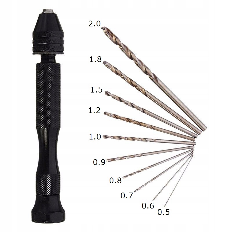 Ручна міні-дриль + свердла 0,5-2 мм 10 шт