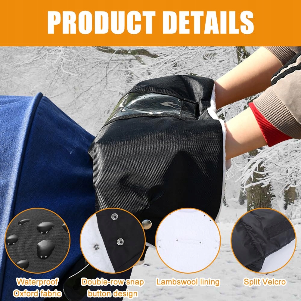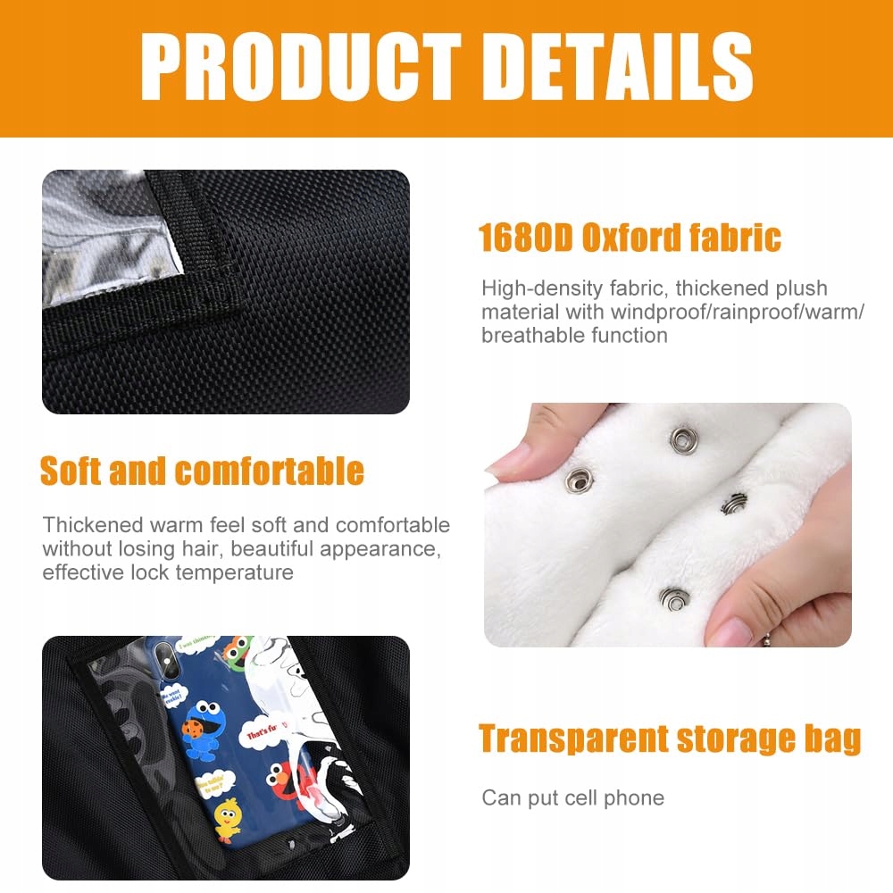 Водонепроникний та вітряний: Зовнішній водонепроникний Оксфордський тканина дуже водонепроникна та вітряна, ефективно запобігаючи ізоляції дощу та снігу в рукавички. Ручний нагрівач для візки має прозору кишеню на поверхні, де ви можете приховати свій мобільний телефон. Це забезпечує кращий захист від холоду.