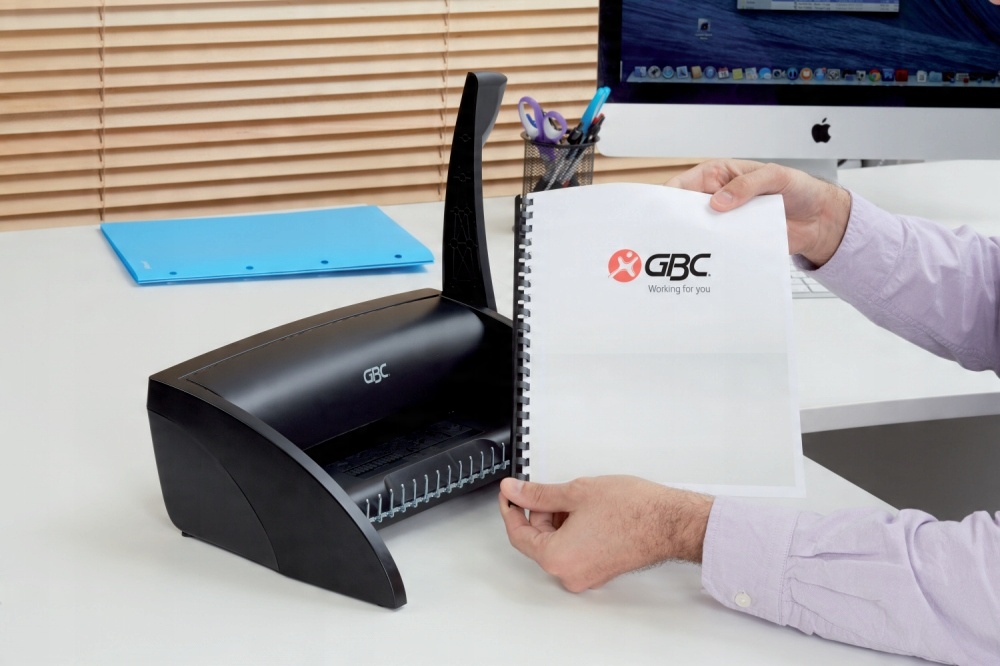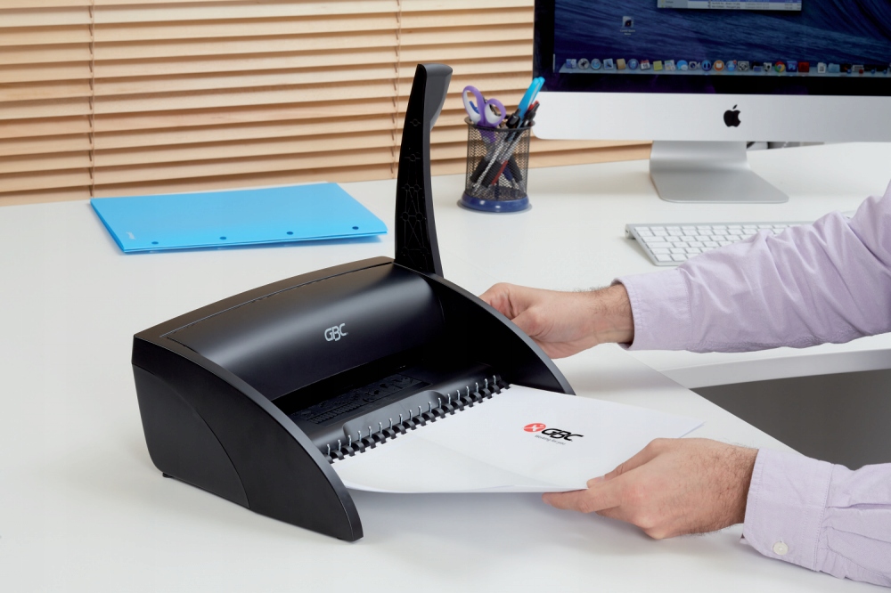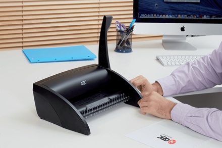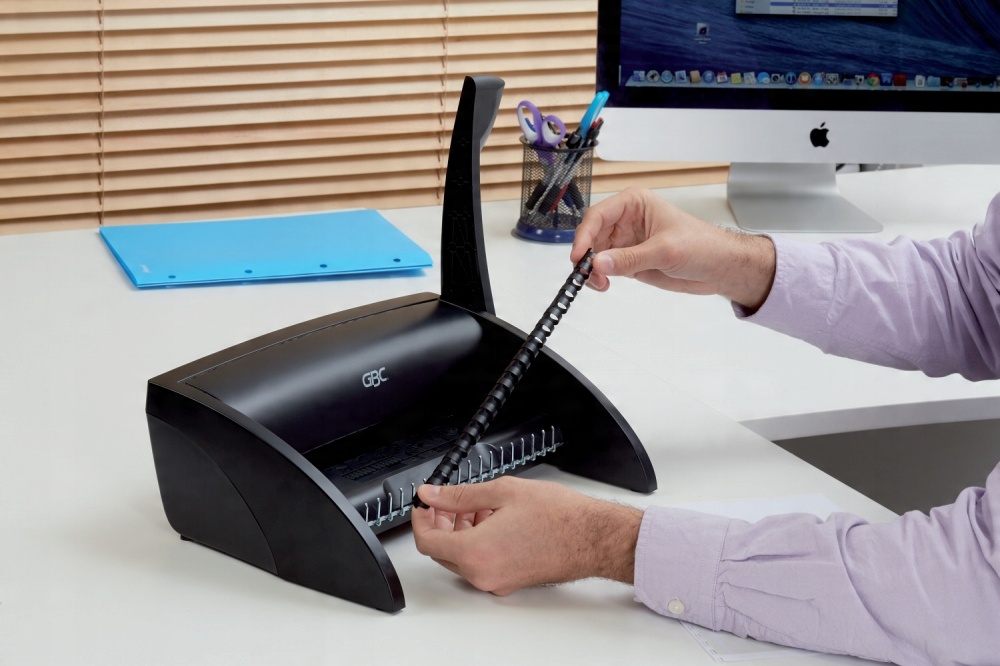 Невеликий гребінчастий переплетний апарат — ідеальний для домашнього використання чи невеликого офісу, де час від часу підшивають документи. b >