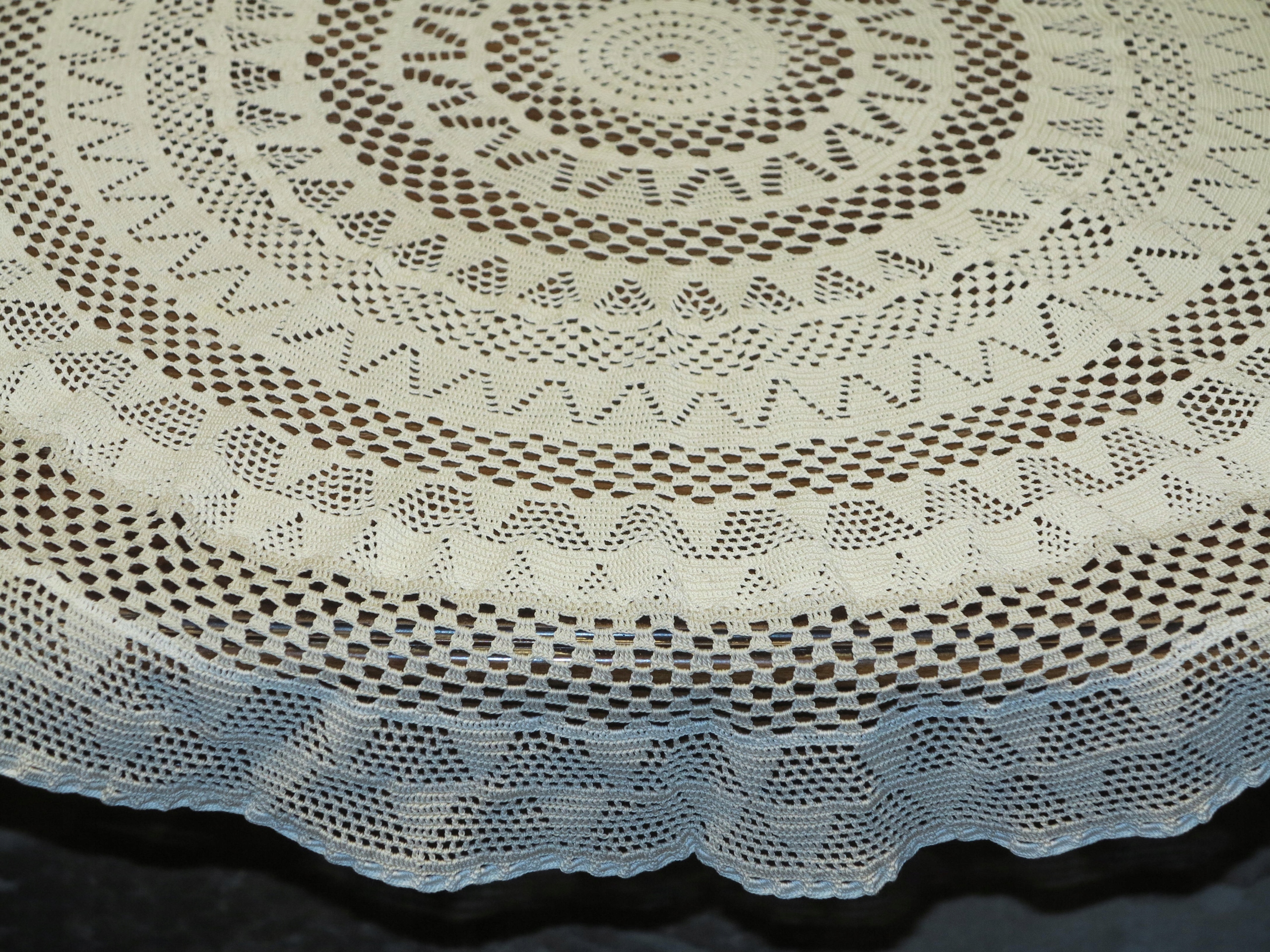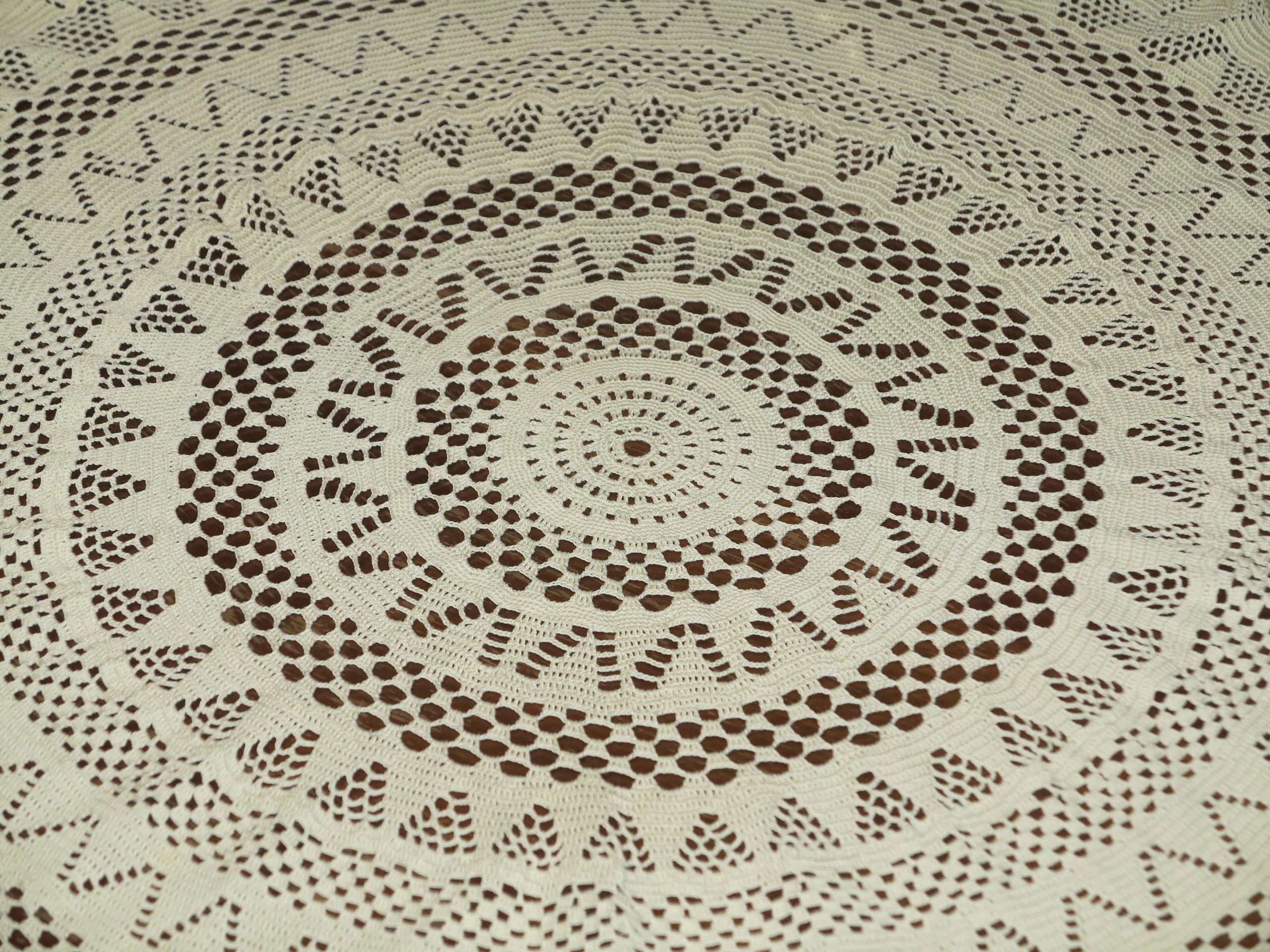 РУКОДЛІННЯ - ГАРНА СКАТЕРТИНА З БАВОВНЯНИХ НИТОК. ІНТЕНСИВНА РУЧНА РОБОТА. ВНУТРІШНІСТЬ СВІТЛО-БЕЖЕВОГО КОЛІРУ, ЗОВНІШНІ ВИЗЕРУНКИ МІЦНІШЕ БЕЖЕВОГО КОЛЮ