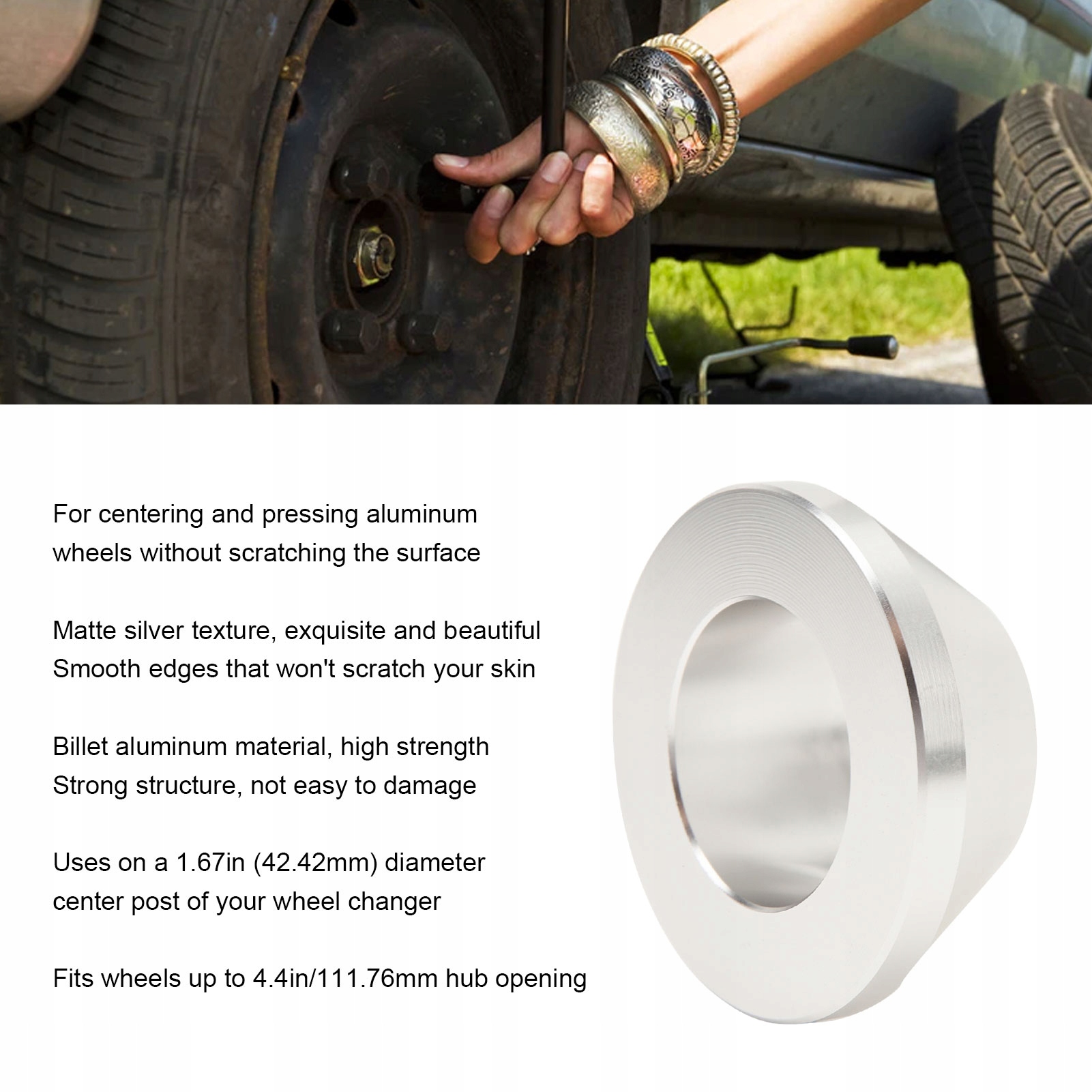 2. Працює на колесах, які мають отвір у маточинах до 4,4 дюйма (111,76 мм), цей конус може бути використаний лише на середній стовпах монтажної машини діаметром 1,67 дюйма (42,42 мм), що відповідає більшості імпортованих посібників для автомобілів.