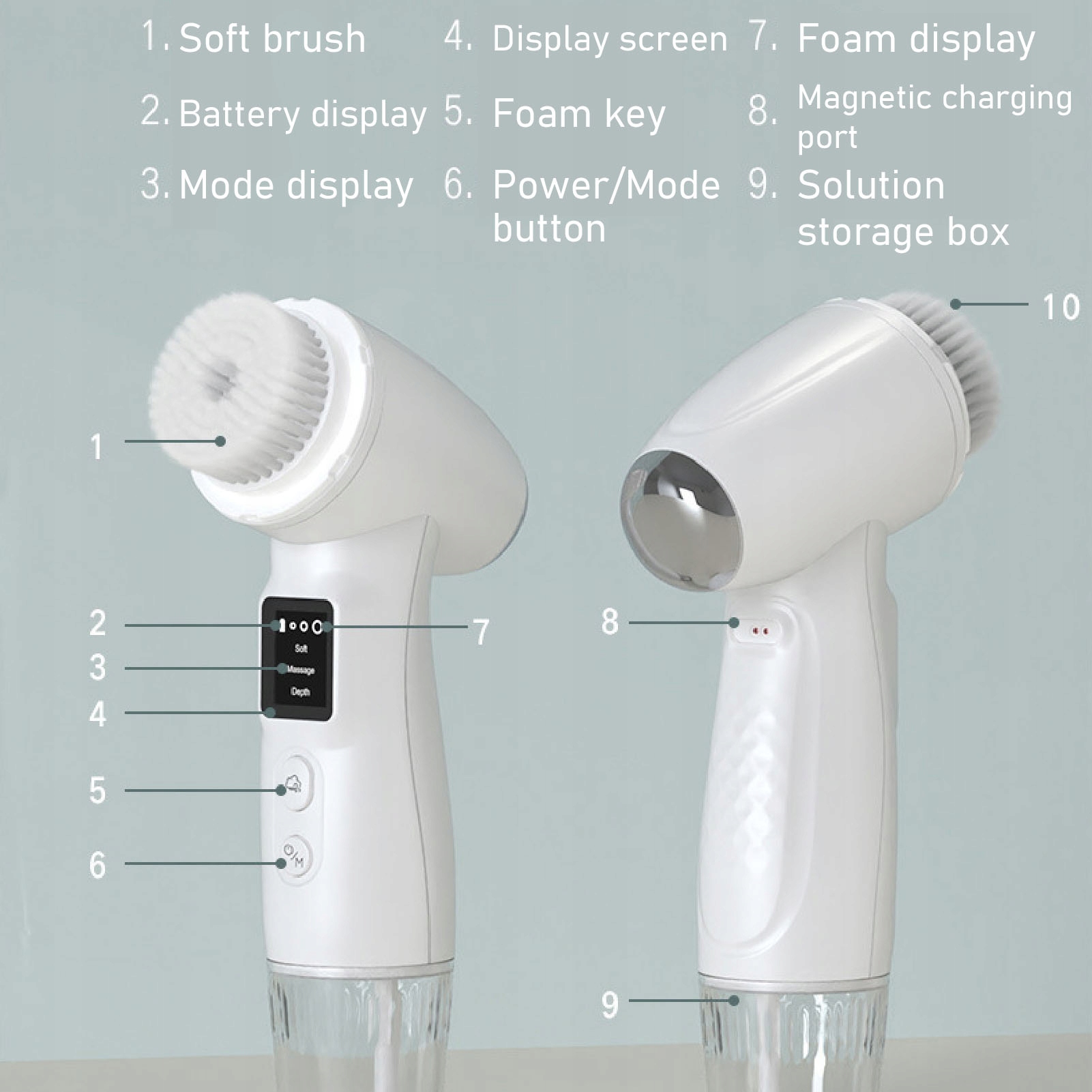 3. Простий у використанні: натисніть кнопку піни протягом приблизно 2 секунд, щоб покрити всю насадку щітки для очищення обличчя піною, дозволяючи наповнювати піну під час використання NaVery Convenient.