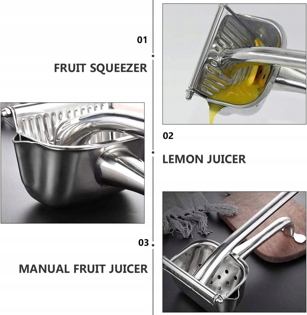Виготовлений із високоякісної нержавіючої сталі, стійкий до іржі та довговічний у використанні. Ручна соковижималка для фруктів з нержавіючої сталі Ручна соковижималка для фруктів Її безпечніше вичавлювати та легше чистити. Ручна соковижималка Підходить для лимонів, апельсинів, груш, грейпфрутів та інших фруктів. Соковижималка - чудовий подарунок для друзів, рідних і колег. Ручна соковижималка для фруктів Портативна гладка ручка, яку легко тримати в руках. Ручна соковижималка для фруктів