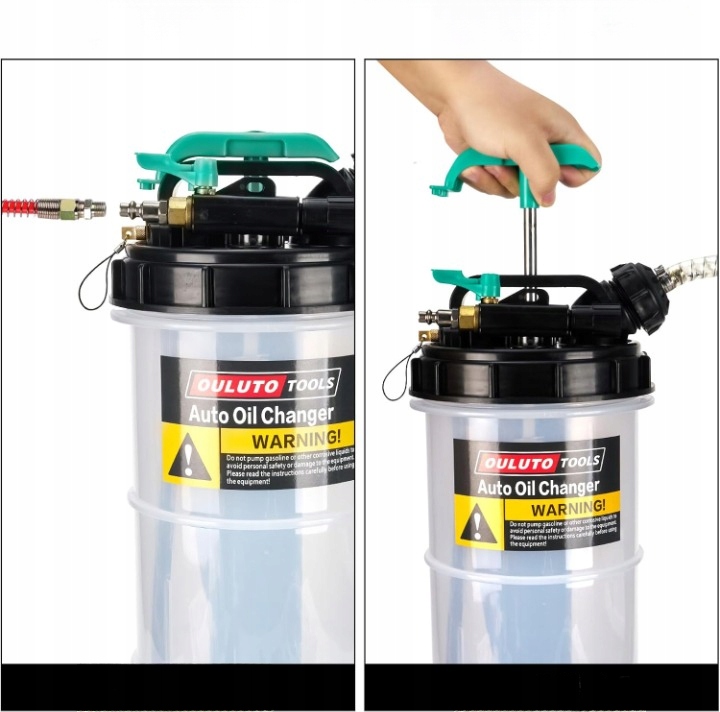 Ouluto 5 l Manual and pneumatic oil suction pump is a practical and versatile tool designed for quick and safe removal of various liquids, such as engine oil, such as engine oil, such as engine oil, such as engine oil, наприклад, моторне масло, наприклад, моторне масло загальна масло, теплоносій або рульова рідина. Насос пропонує два режими: посібник, який не потребує додаткового обладнання та пневматичного, забезпечуючи швидшу зміну масла завдяки вакууму.